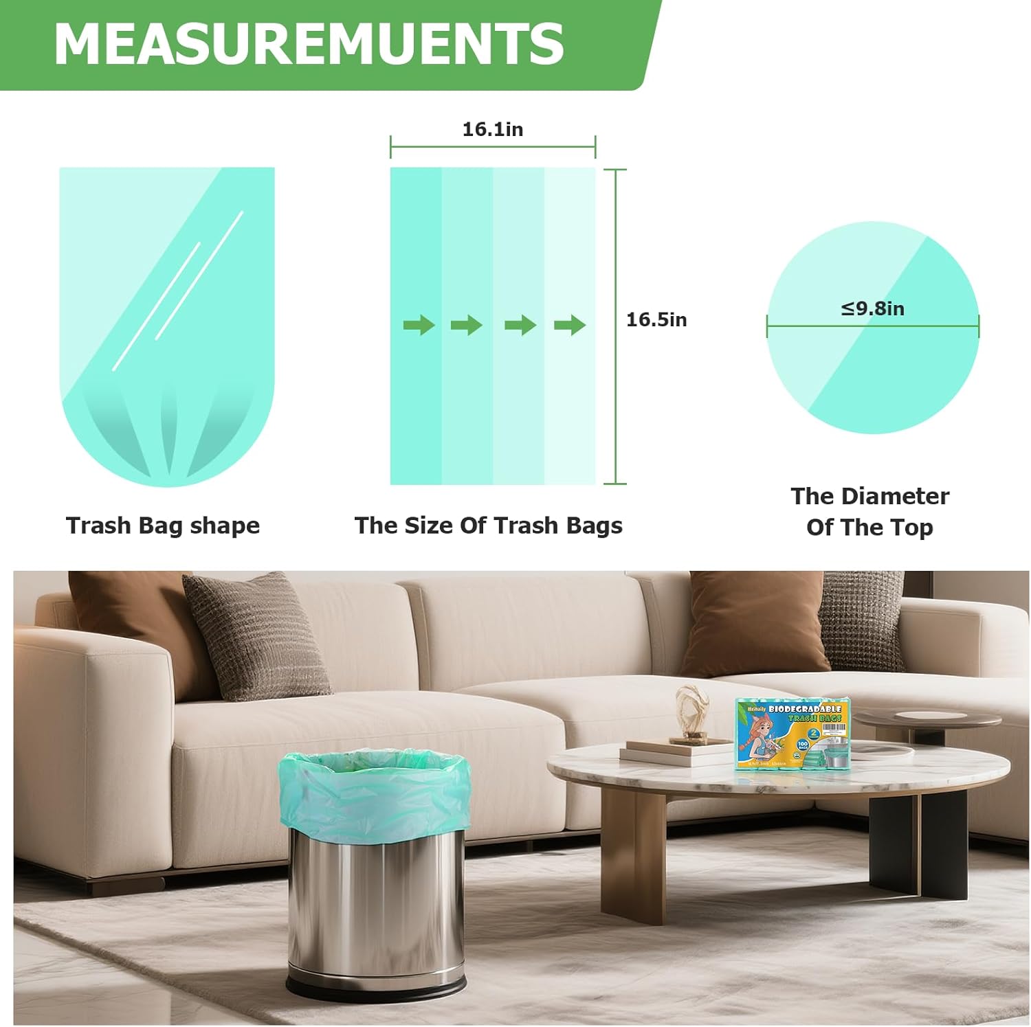 Small Trash Luggage with Eco-Pleasant Options – Crafted as inexperienced mini rubbish luggage, these 1.2 gallon trash luggage are biodegradable and compostable. Preserve your areas clear whereas lowering environmental impression with these eco-conscious choices.