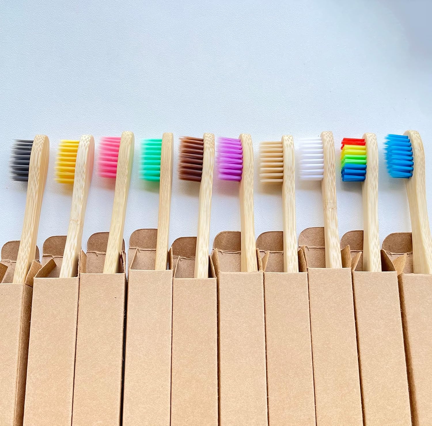 INDIVIDUALLY PACKAGED — 10 Pack EXQUISITE PACKAGING bamboo toothbrushes. 10 shade allow simply inform each toothbrush aside,very appropriate for relations.ECO pleasant and renewable kraft paper is used for packing field.