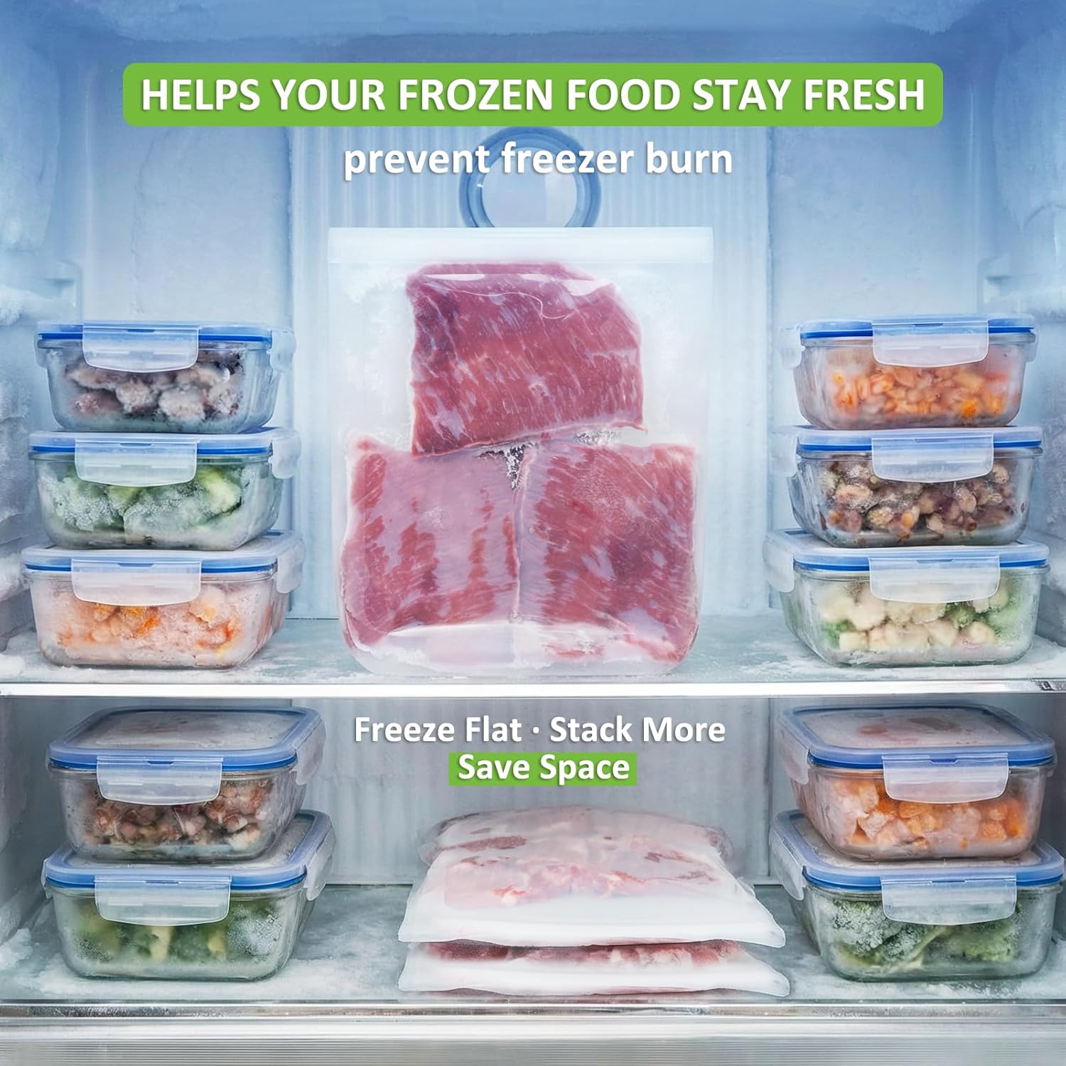 【EASY TO USE & DURABLE】 These gallon silicone freezer baggage are thick, sturdy, and constructed to final, every changing 500+ single-use plastic baggage to cut back waste and get monetary savings. Massive clear home windows allow you to simply see what’s inside; The matte end on the remainder of the bag provides a contact of class and a premium really feel, whereas raised grip traces on each side of the opening present further friction, so the luggage are simple to open and shut