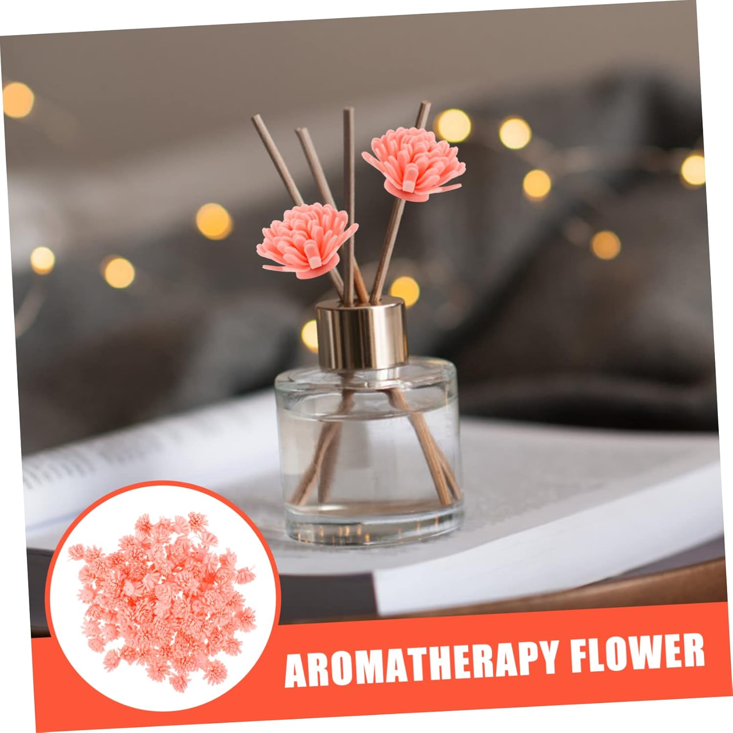 Oil diffuser:put the aromatherapy flower on the rattan stick and put it into the diffuser bottle to make the entire stick moist, and the aroma of the important oil will evaporate by the flower diffuser stick,aroma diffuser