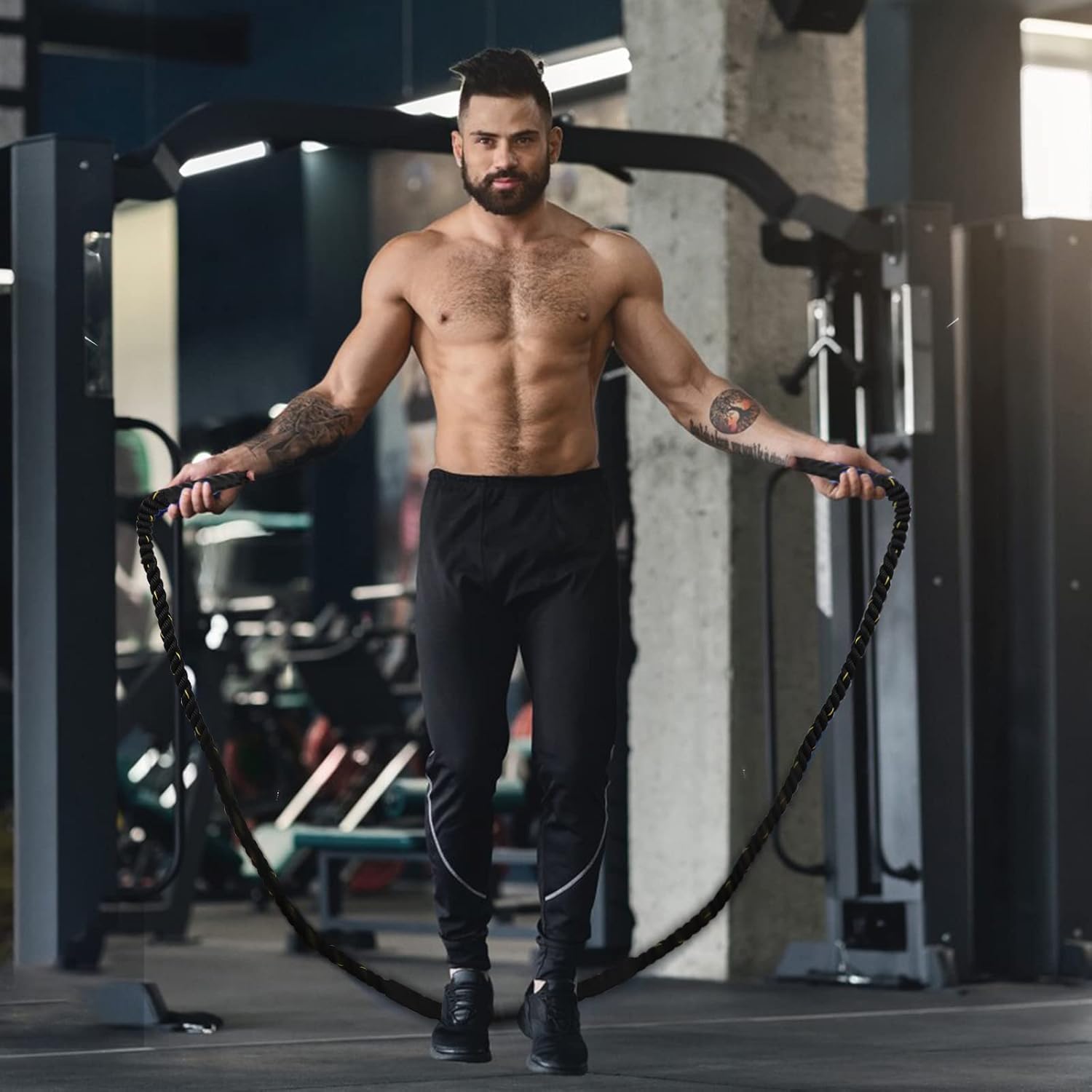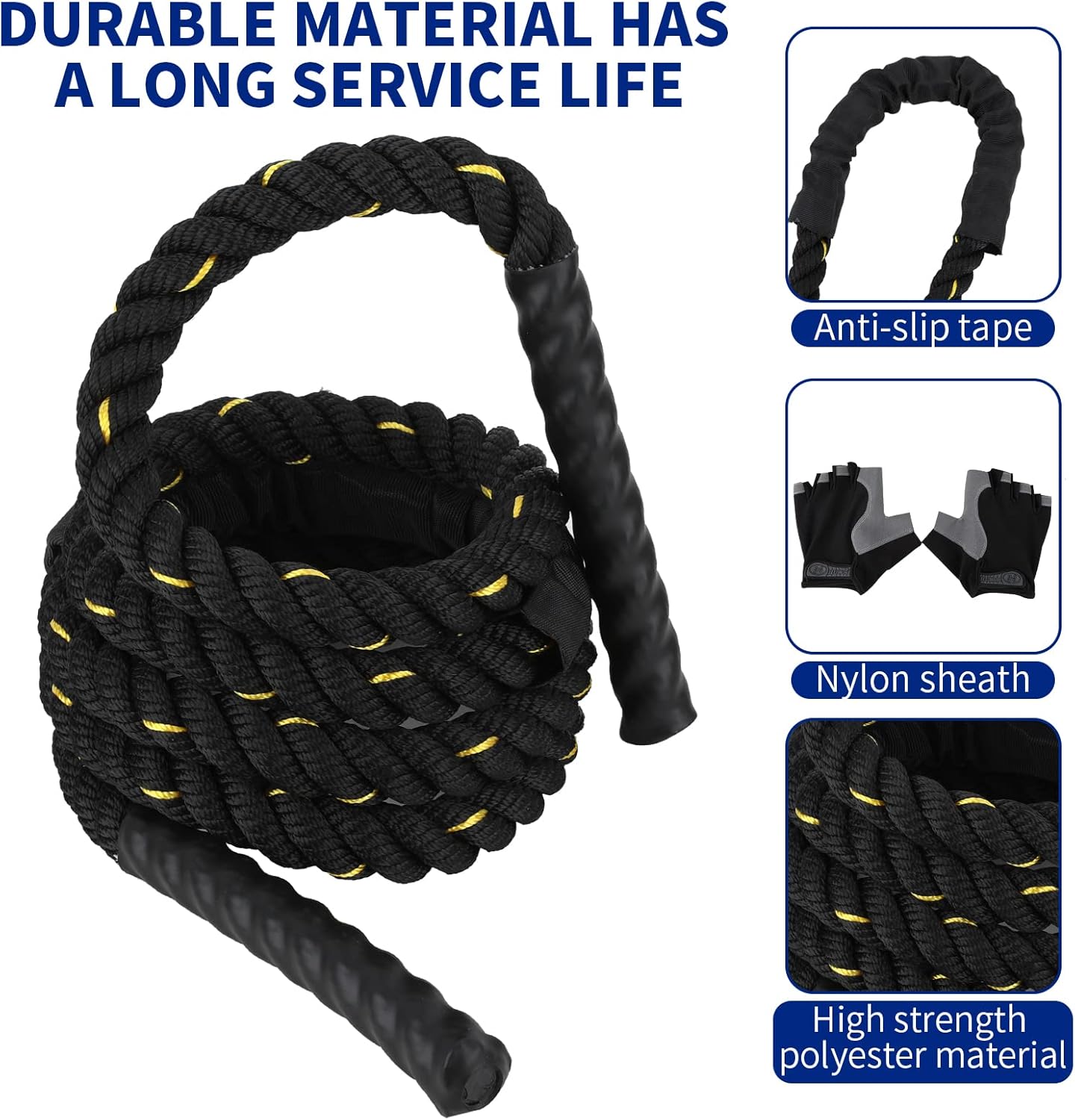 👍【DURABLE & LONGLASTING】- Exercise Rope, utilizing excessive tensile power polyester cloth and sturdy protecting cowl cowl, fight rope with sturdy clear waterproof heat-shrinkable tube within the center, with a protracted service life, not simple to interrupt, to make sure easy and easy train.