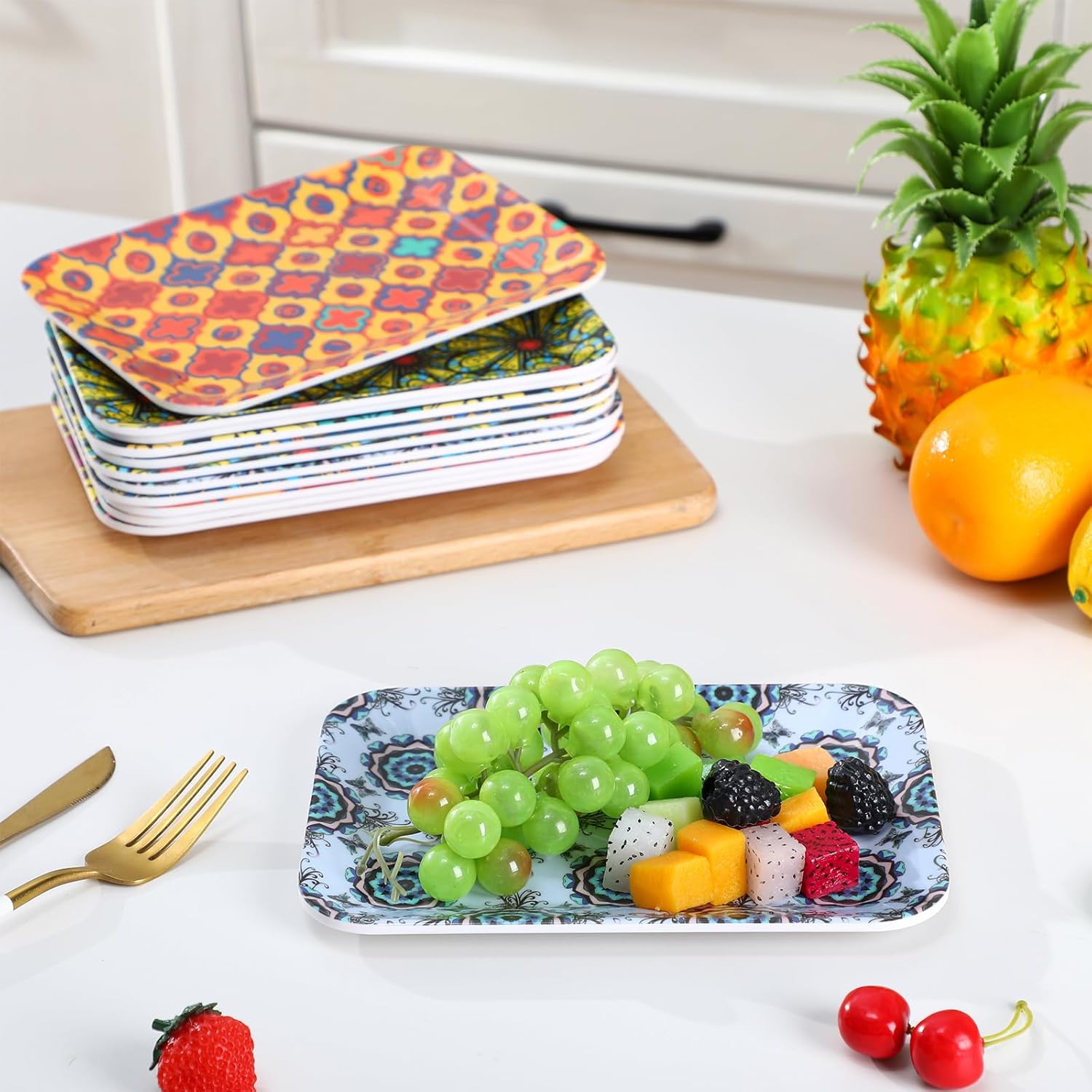 Beneficiant Amount and Versatility in Utilization: this bundle consists of 12 items of 8 inch rectangular salad plates, designed to cater to your serving wants; The plates are simply not restricted to salads; They function an excellent serving medium for varied sorts of dishes, making them a flexible addition to your kitchenware; In addition they maintain potential for portion management, supporting your efforts for higher consuming habits and meals presentation