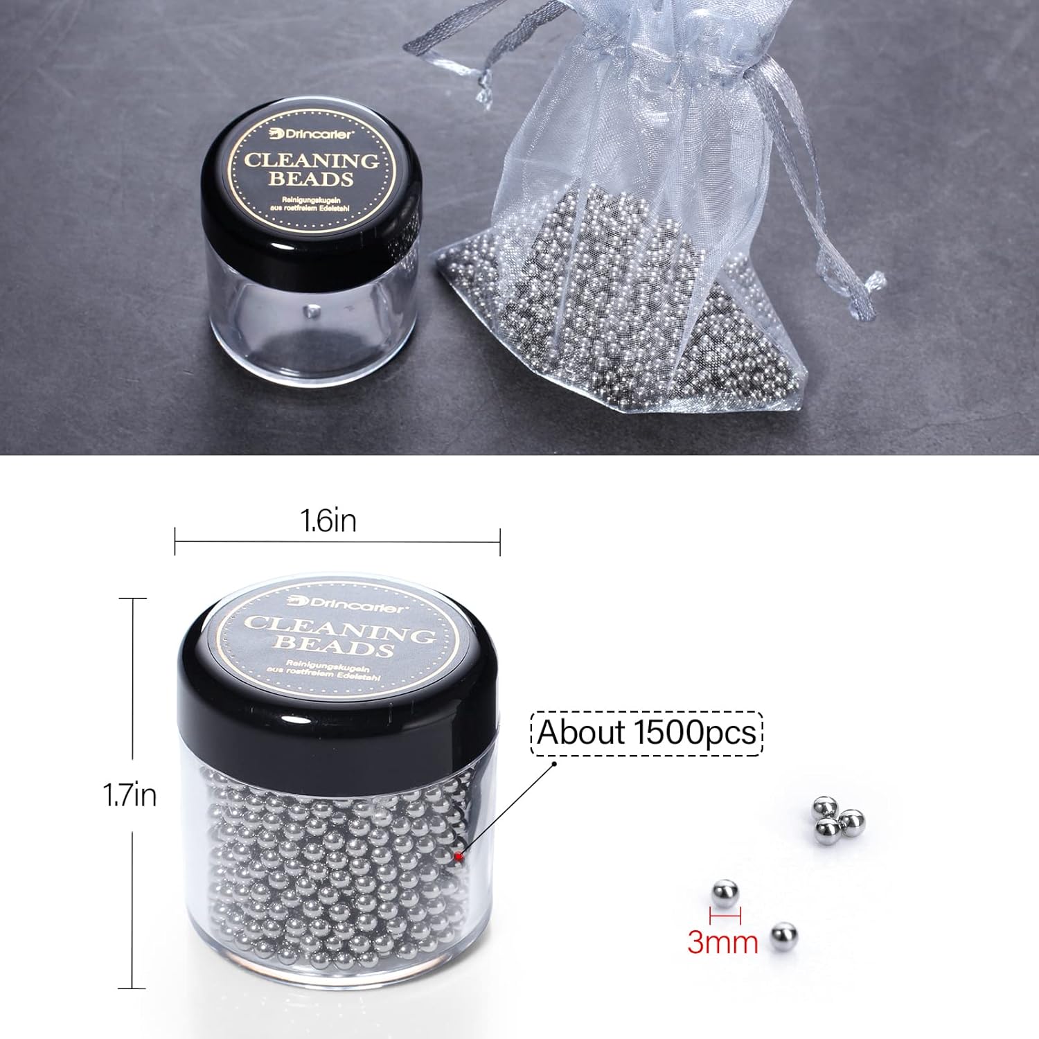 Secure and Dependable:Spherical and easy like pearls in 3mm diameter, comes uniform friction with the inside wall of the container with out damaging your glassware.