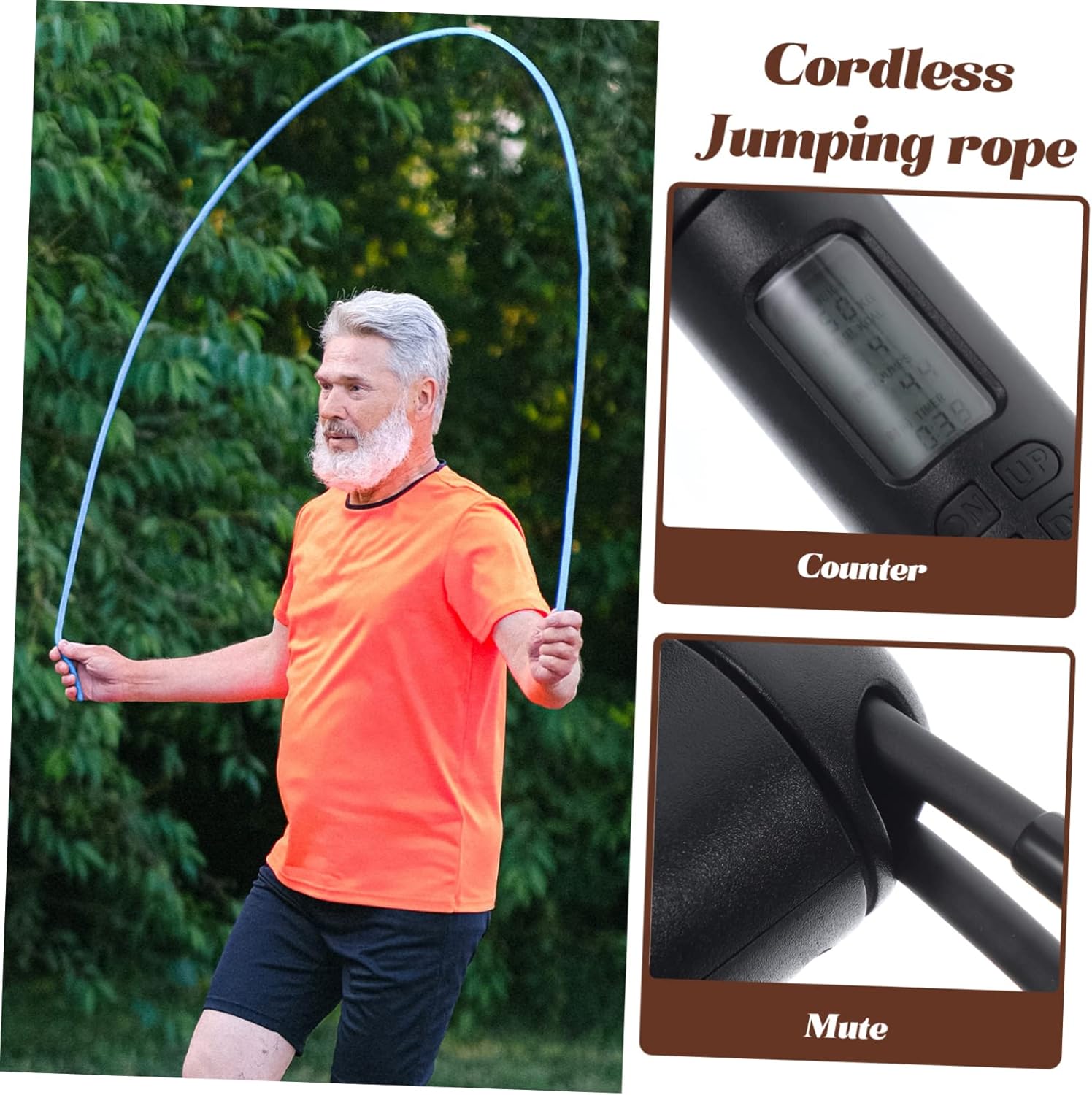 -Measurement:17.30X2.80X2.80cm/6.80X1.10X1.10in(Deal with) bounce rope with counter