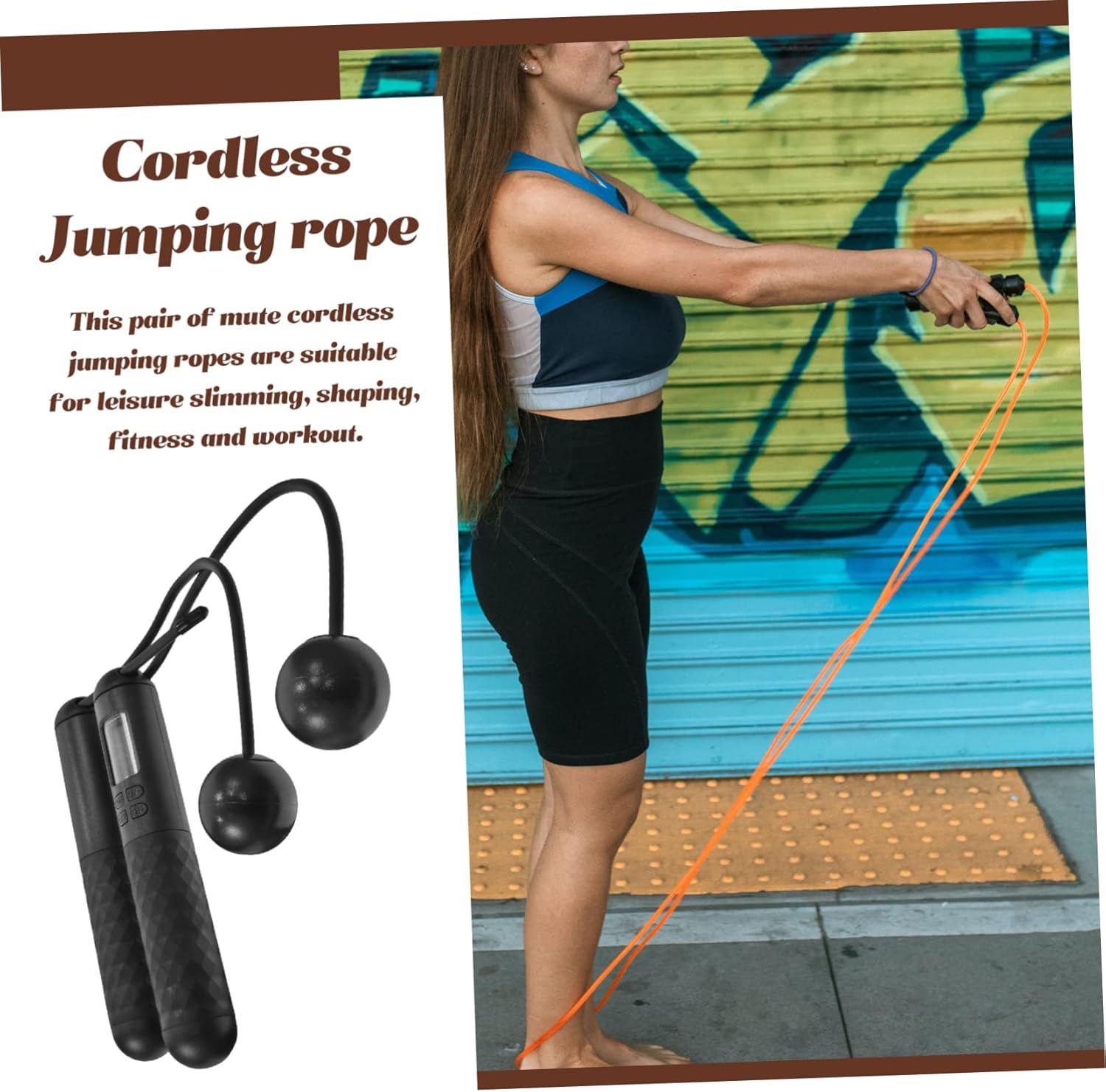 – Shade: Black cordless bounce rope with counter