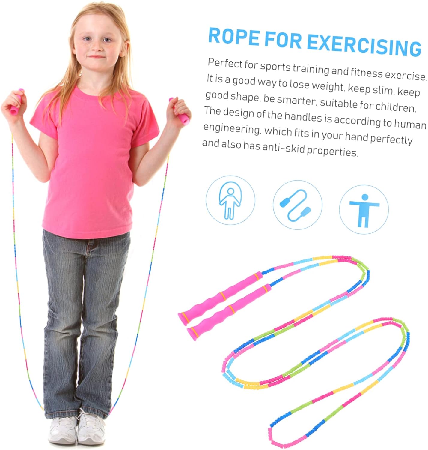 -Utilizing artistic beaded part design, skipping rope is not going to be tangled leap rope exercise.