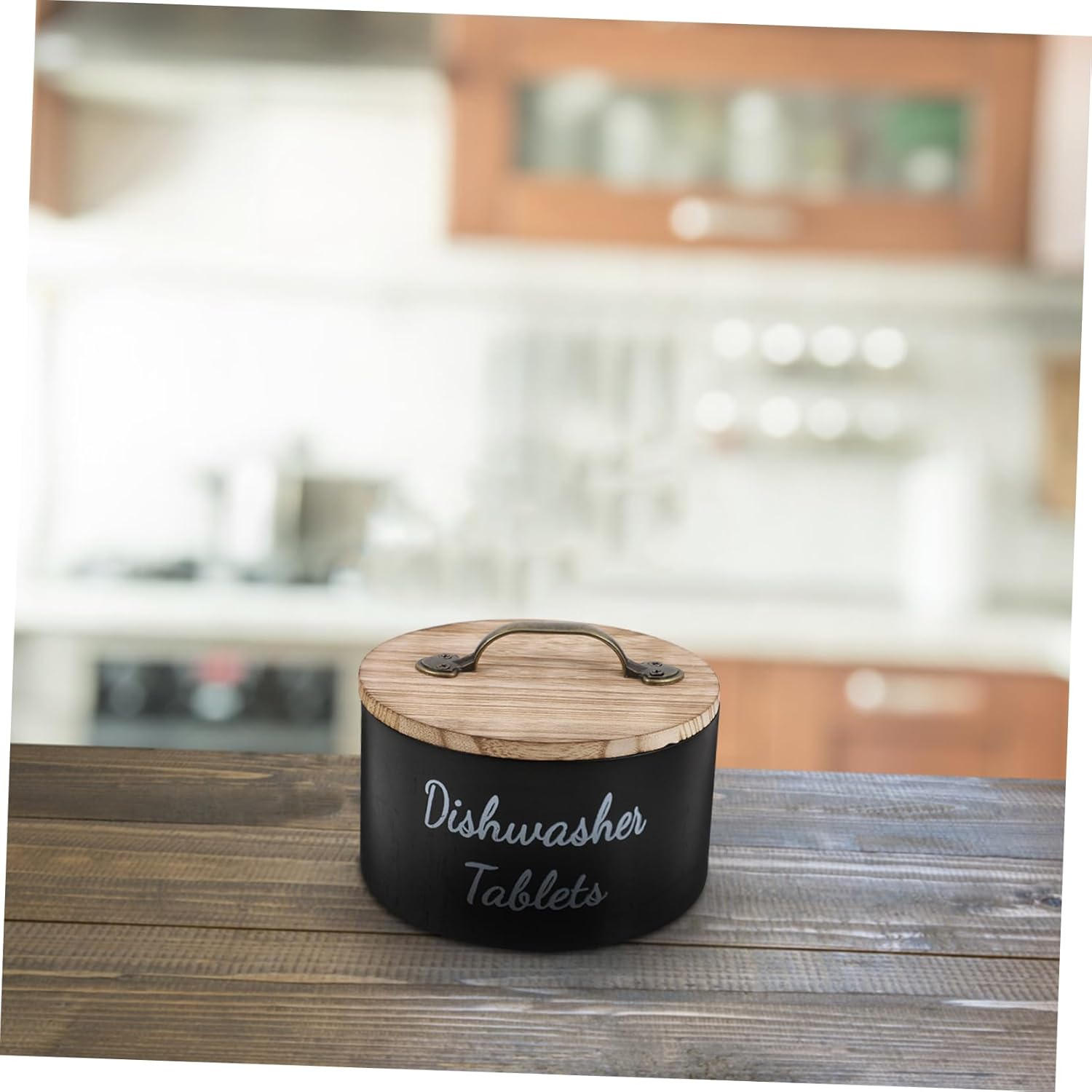 Elegant aesthetics: the pure wooden grain and modern design make this container a trendy addition to any kitchen, mixing seamlessly with varied decor kinds,laundry powder bucket,washing pill container