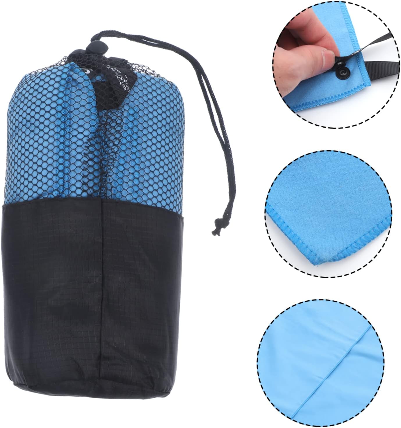 -Coloration:Sky-blue(Towel), Black(Bag) sports activities tenting towel
