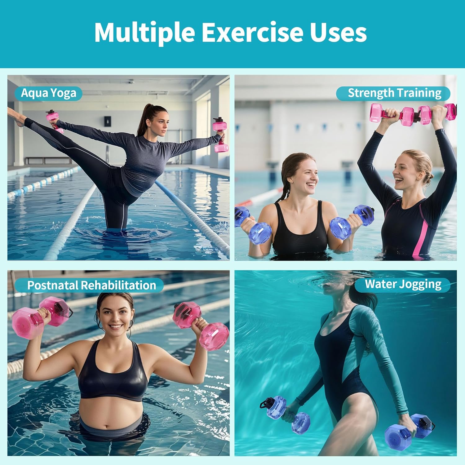 【Long Lasting PE Water Weights】- Made of high quality PE material, Fstcrt water weights for pool exercise are chlorine and corrosion resistant and can be dried quickly after use. Compared with EVA dumbbells, water dumbbells with PE material are durable and not easy to fade or crack due to long-term immersion, especially suitable for high-frequency use or public swimming pool; the integrated handle won’t break like EVA spliced dumbbells, and the lifespan is more than 3 times that of EVA dumbbells