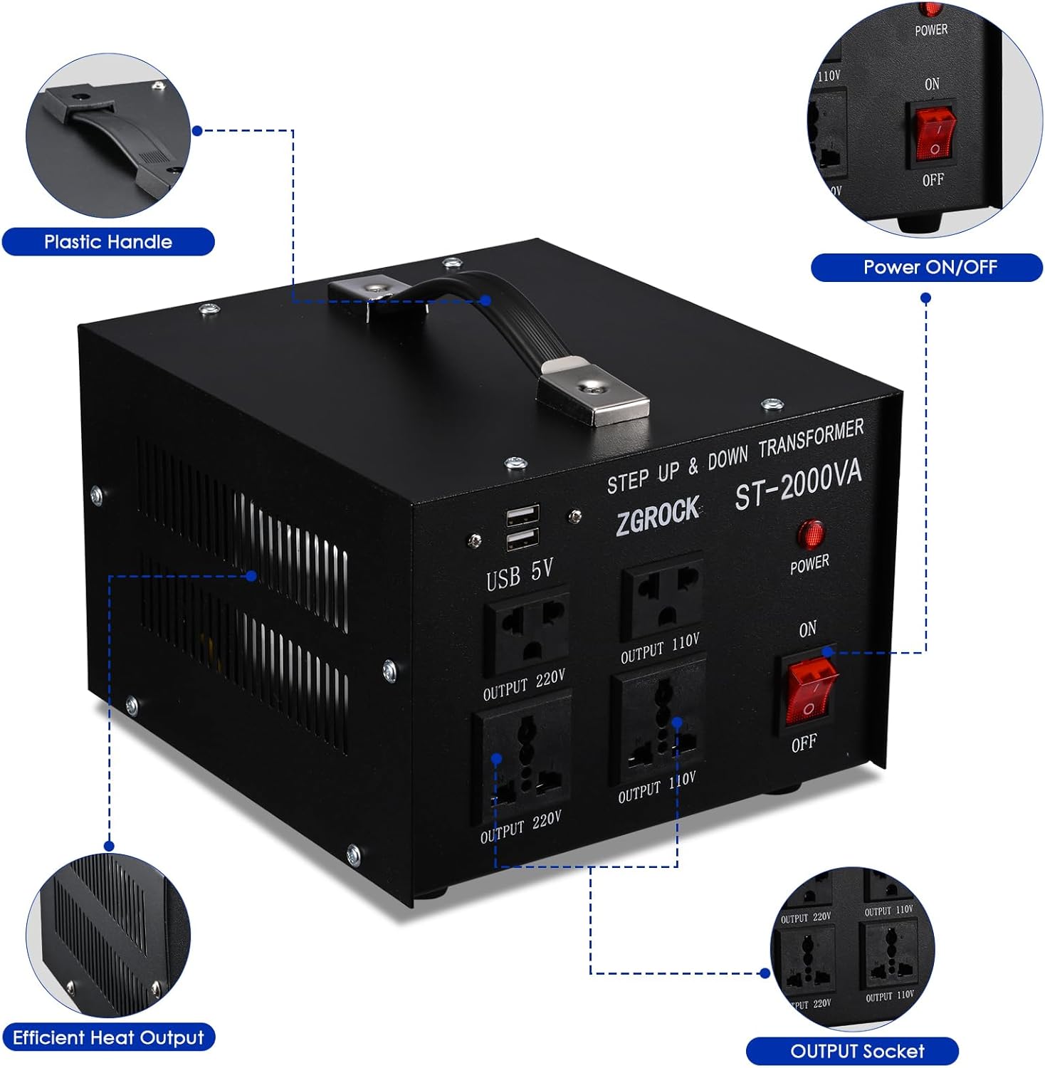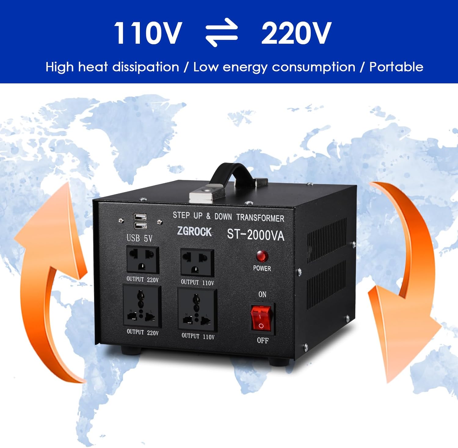 The two USB-A ports additionally present 5V electrical energy to energy and cost all of your private electronics. This electrical transformer works with both 110V or 220V base energy: Simply choose the proper voltage utilizing the change on the again and plug it in