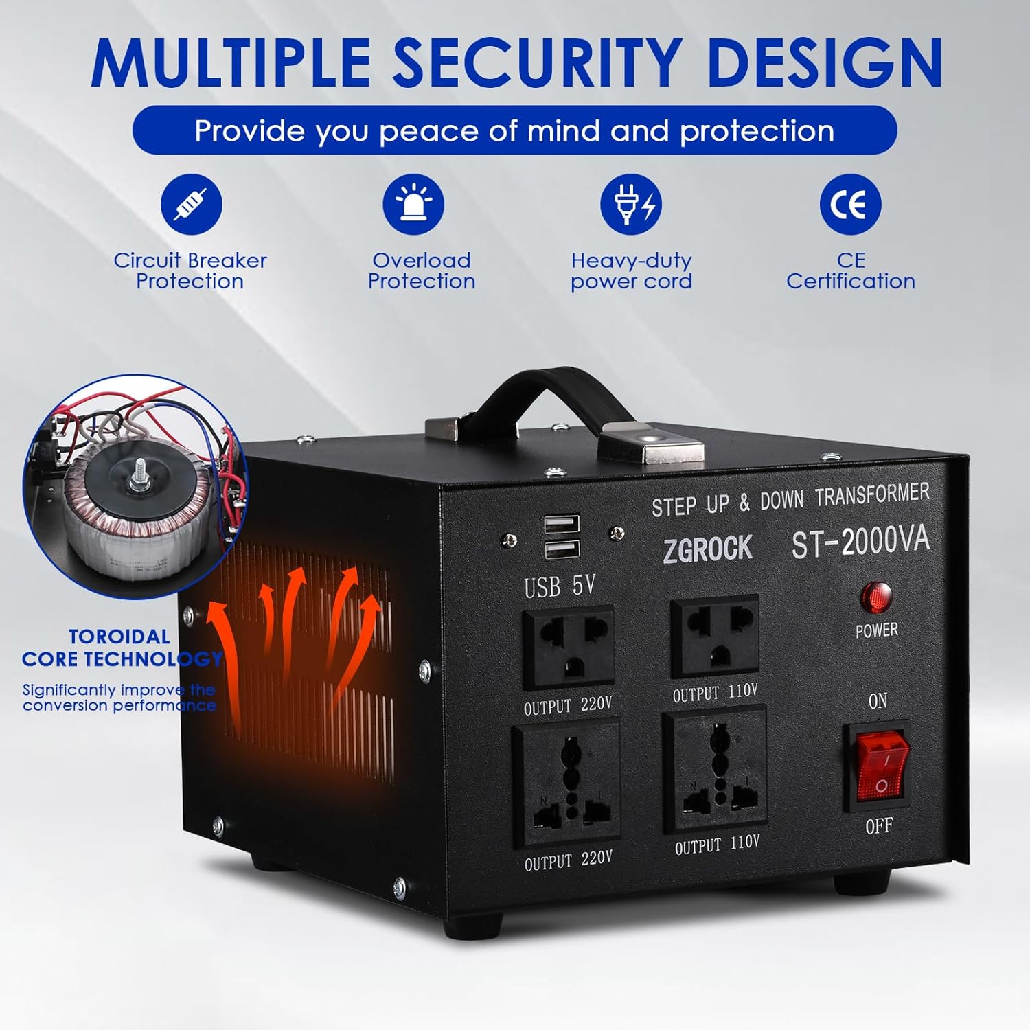 ✔The two USB-A ports additionally present 5V electrical energy to energy and cost all of your private electronics. This electrical transformer works with both 110V or 220V base energy: Simply choose the proper voltage utilizing the change on the again and plug it in.