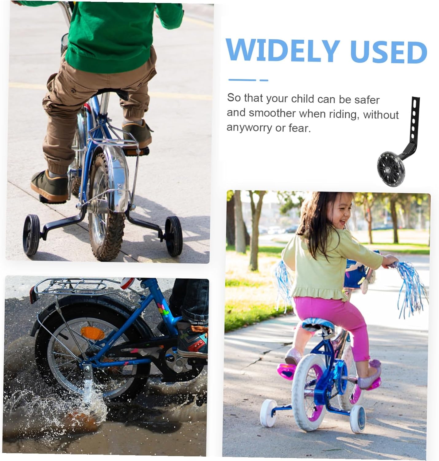 -They’re common wheels suits for 12 inch, 14 inch, 16 inch, 18 inch and 20 inch bikes bicycle coaching wheels auxiliary wheels.