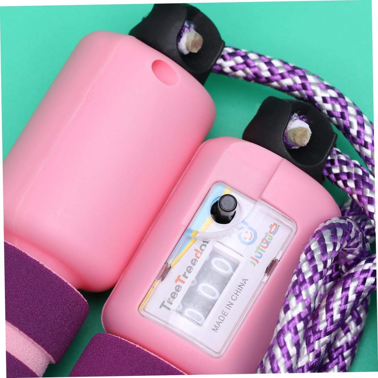 -Colour: Purple and Pink, counting bounce rope.