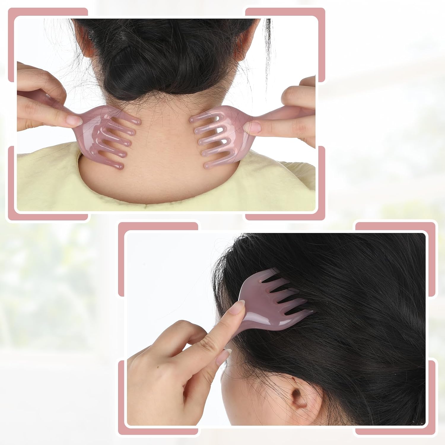 【Multifunctional Therapeutic massage Device】The resin head therapeutic massage comb contains 2 long-handled combs, designed for the scalp, face, neck, legs and arms, and the graceful and rounded enamel guarantee a delicate and efficient therapeutic massage