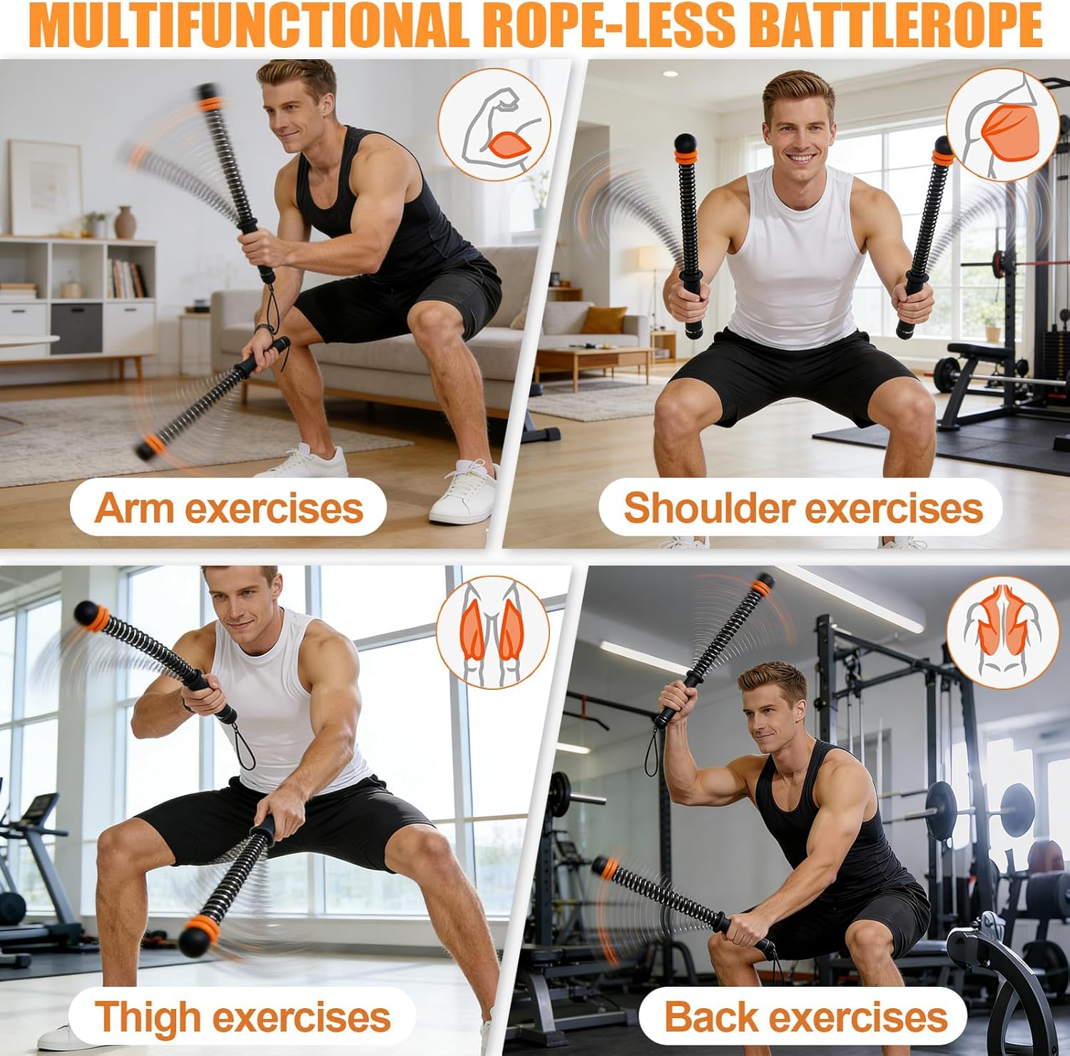 🎁【SPACE-SAVING & PORTABLE DESIGN】No anchor level. No ceiling mount. No cumbersome setup. These ropeless battle ropes are engineered for at house health club gear the place house is restricted. Practice in your lounge, house balcony, and even outside—the compact base stays planted when you transfer. Once you’re accomplished, merely retailer it in a closet or nook. It is the house train gear that matches your house, not the opposite approach round.