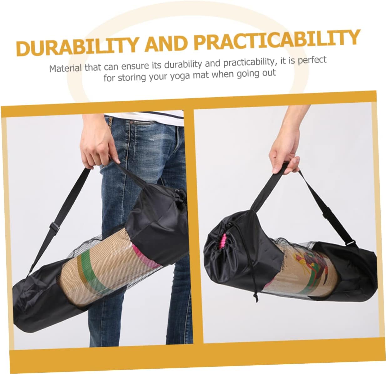 yoga mat mesh bag This merchandise is a yoga mat storage bag, manufactured with , in order that it .yoga mat storage is ideal for storing your yoga mat when going out.yoga mat holder Materials that may guarantee its sturdiness and practicability
