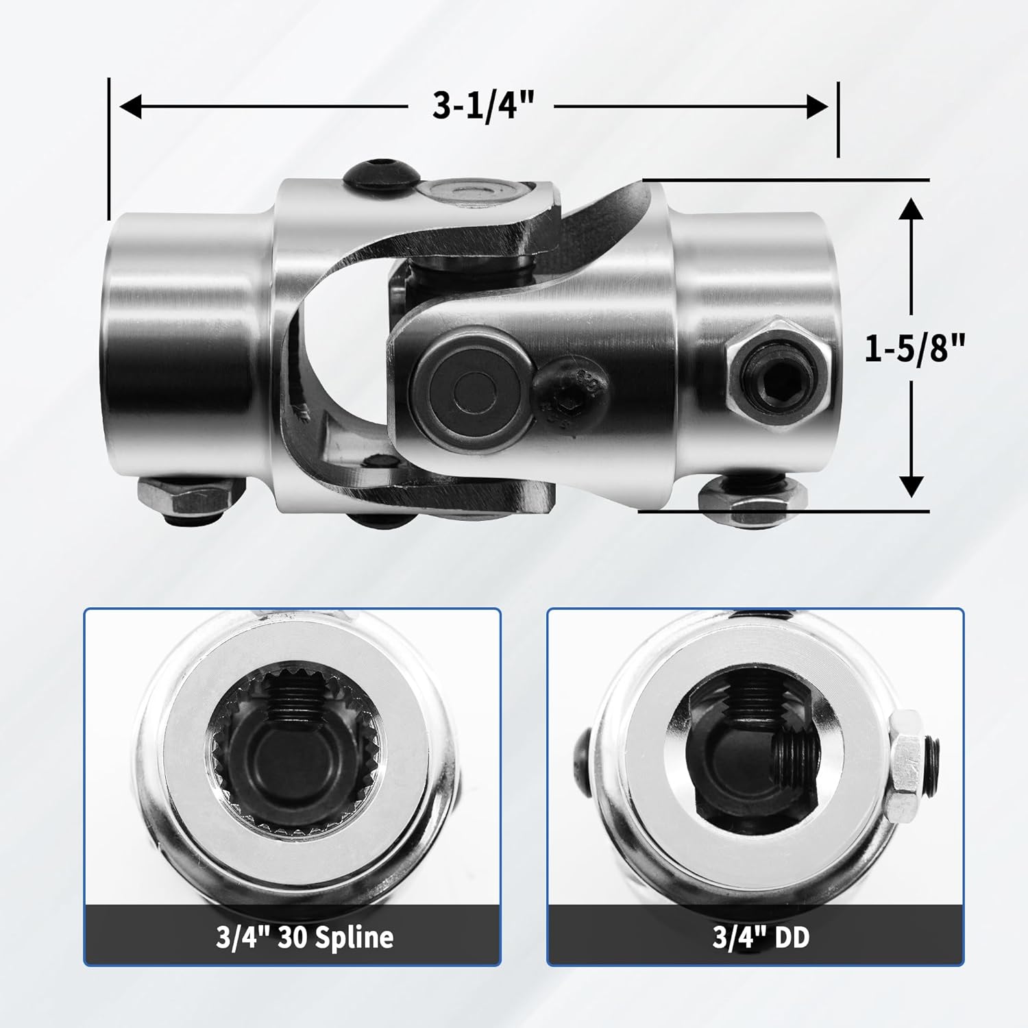 New Steering Common U Joint, 4CR Alloy Metal, Chrome and Polished, Single Steering Joint, Most 35° Working Angle