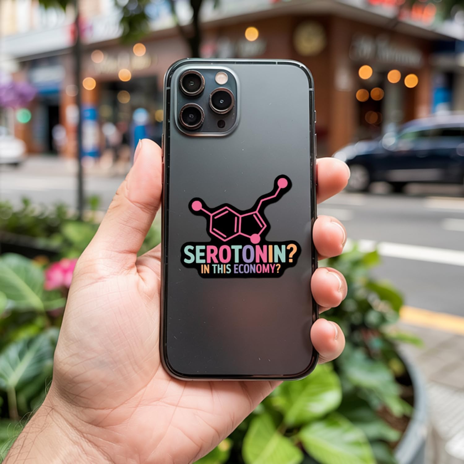 Add a splash of witty psychological well being humor to your on a regular basis gadgets with this intelligent serotonin molecule sticker set. Every pack consists of 3 an identical vinyl decals measuring 3 inches, that includes a classy black background with a pink molecular construction and rainbow-colored textual content that reads ‘Serotonin? In This Financial system?’ These waterproof stickers are excellent for personalizing your laptop computer, water bottle, tumbler, pocket book, or any easy floor you would like so as to add some character to. The sturdy vinyl materials ensures the design stays vibrant and intact, whereas the sarcastic message gives a relatable commentary on trendy life. The molecular paintings combines scientific accuracy with playful design, making it an excellent selection for anybody who appreciates each chemistry and humor. These high-quality decals are simple to use and make nice dialog starters wherever you stick them.