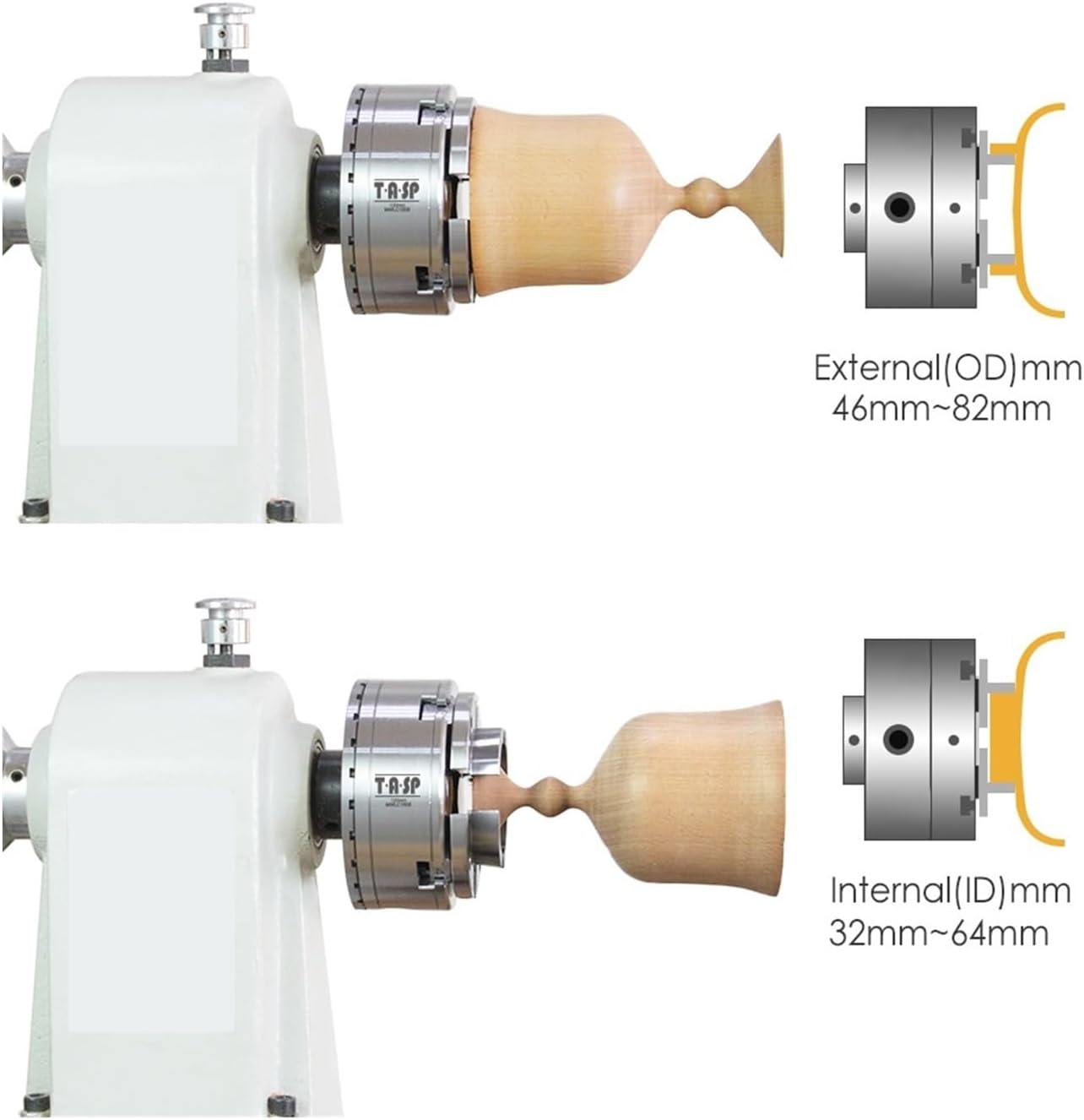 (Not together with the wooden lathe chuck)