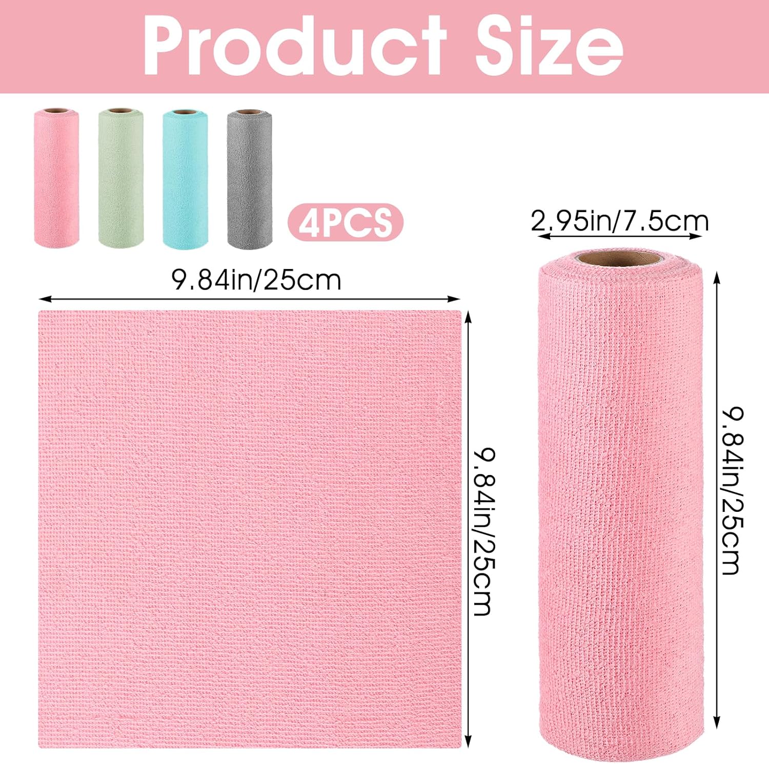 【Versatile & Colourful】Accessible in pink, grey, blue, and inexperienced, our microfiber paper towels roll is appropriate for numerous cleansing duties. Whether or not within the kitchen, lavatory, or backyard, these towels are your go-to answer for efficient cleansing