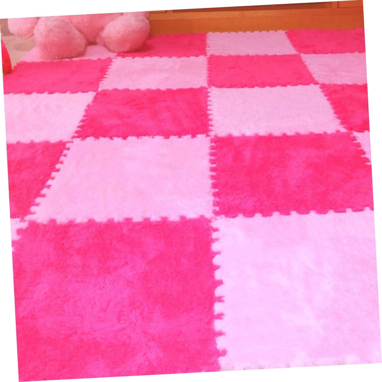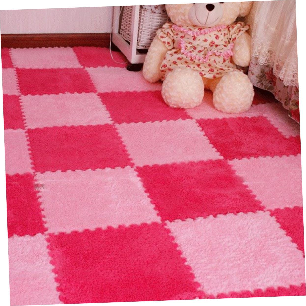 4Pc Interlocking Eva Exercise Mat Non Slip Floor Yoga Mat for Home Gym for Fitness Playrooms and More Rose Red Pink