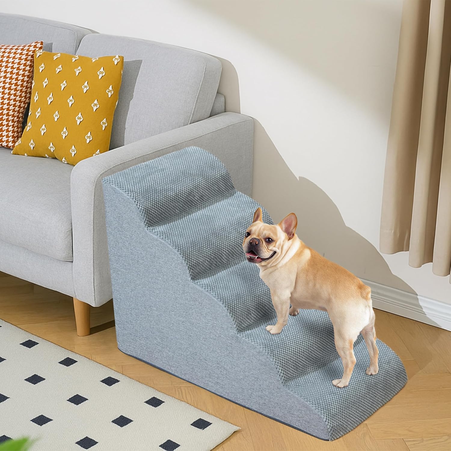 Optimum Peak for Excessive Beds and Sofa – 22.6” tall with 5 steps designed to assist small pets climb safely to elevated furnishings.