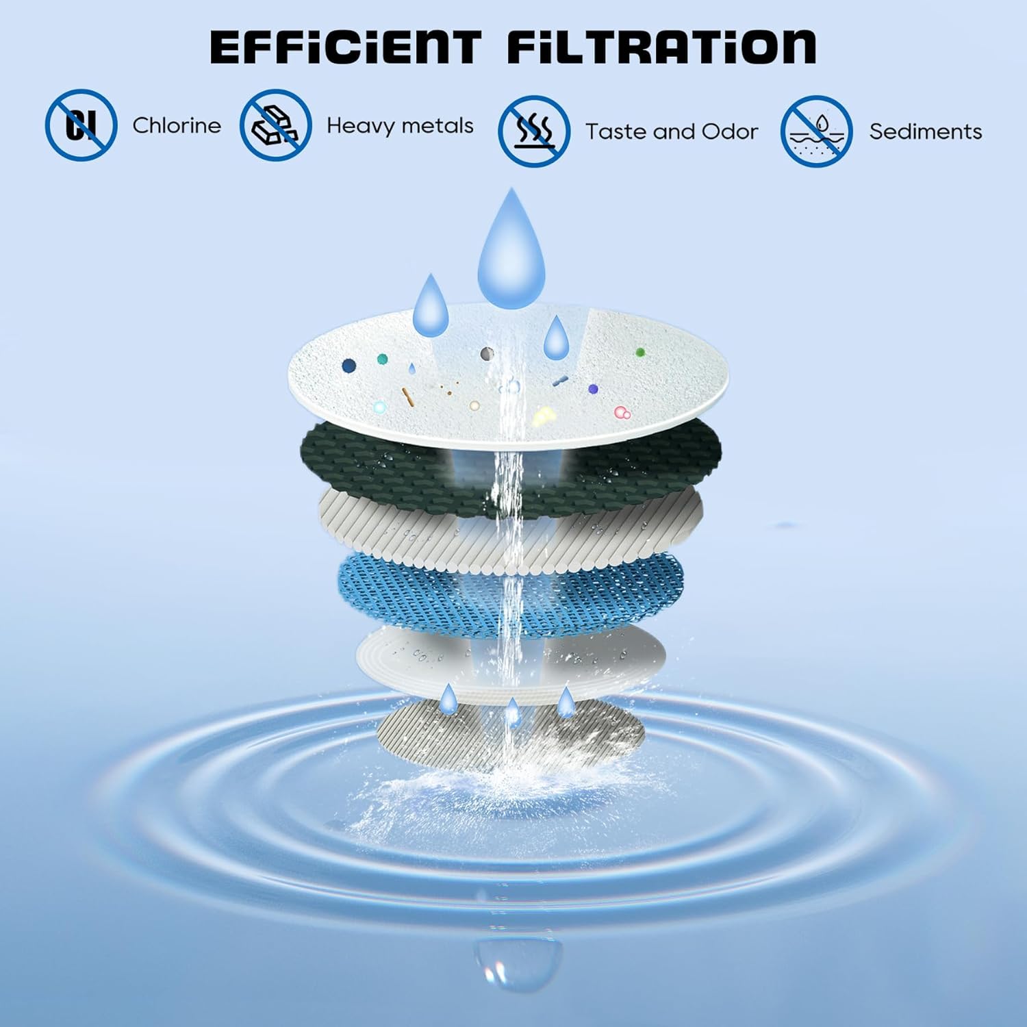 Reduces chlorine,lead,cysts; improves style absorbs odors