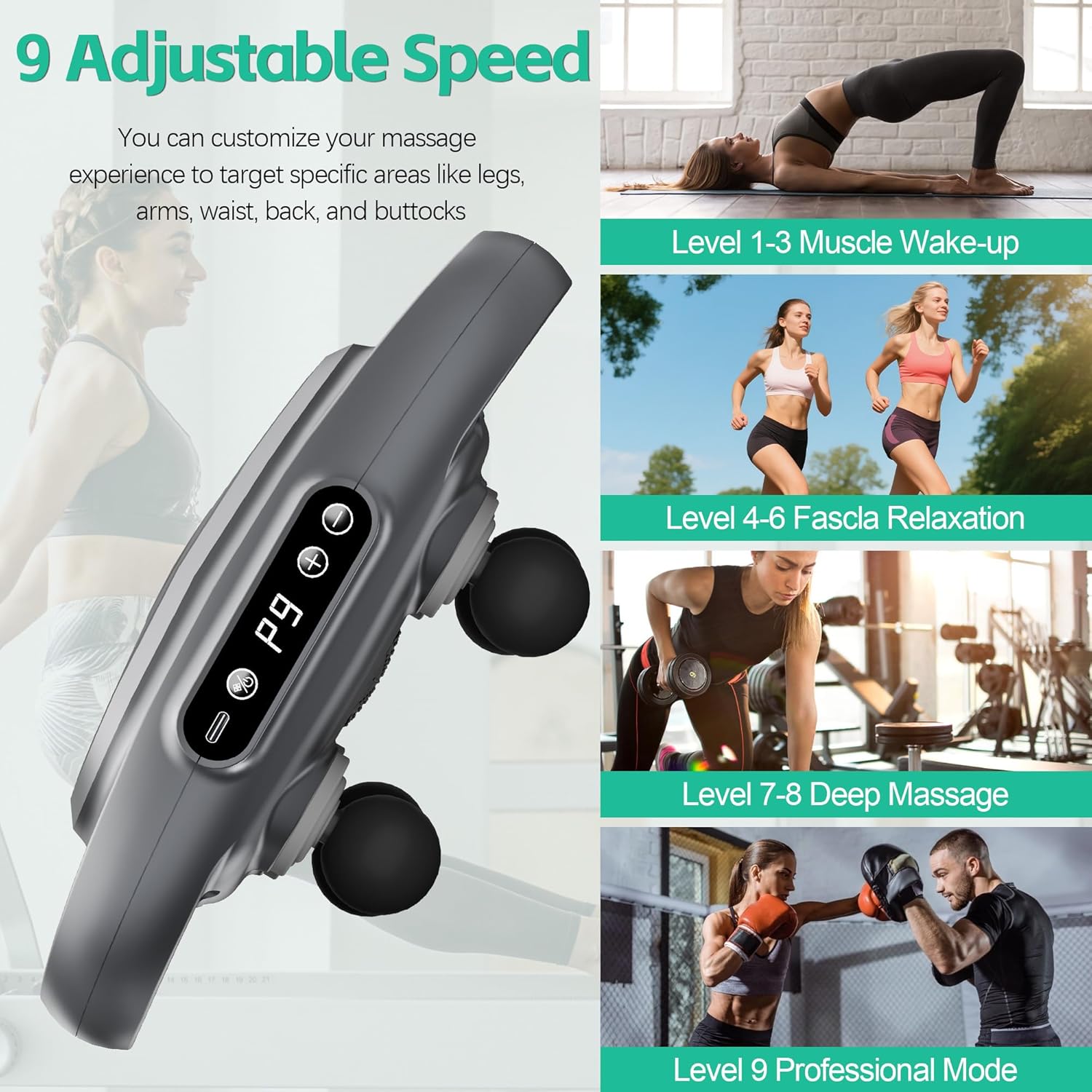Options 9 adjustable gears and 9 therapeutic massage modes to cater to completely different preferences and desires.
