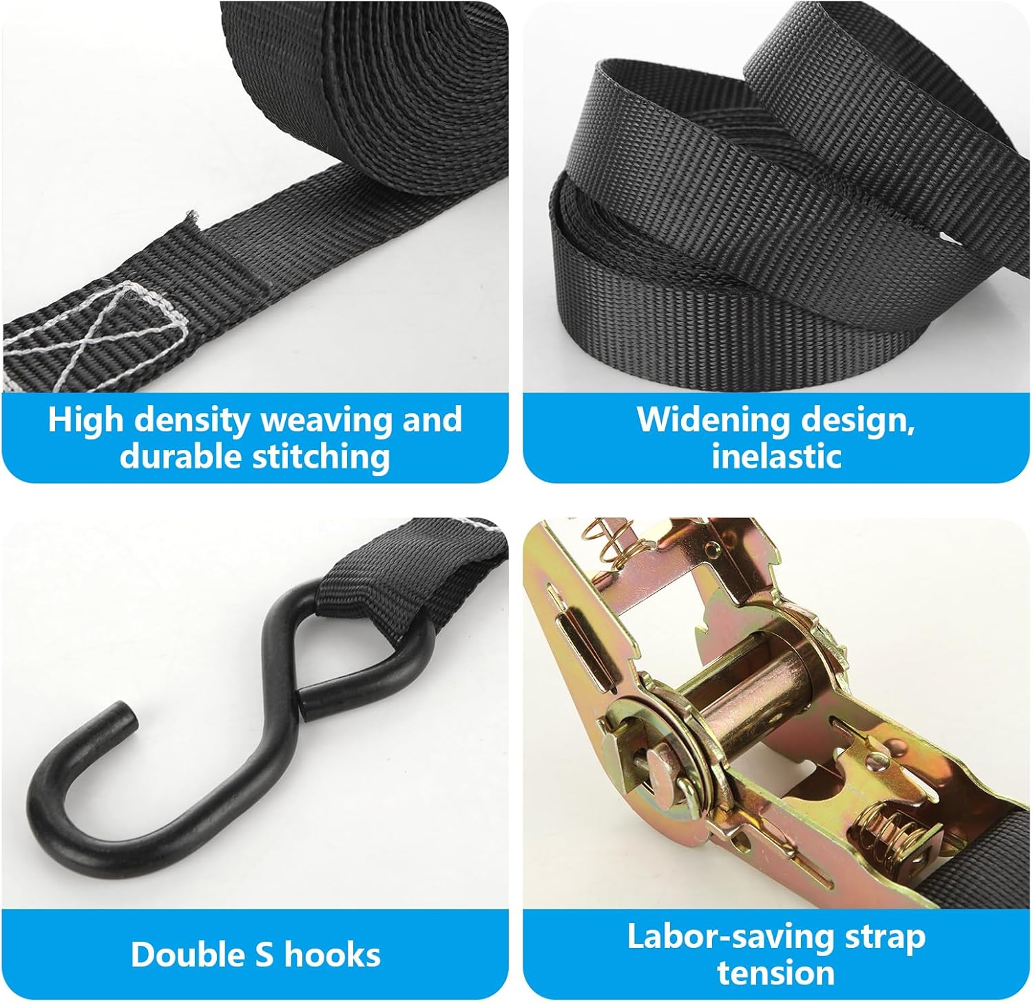 【Ratchet Straps with Hooks】Ratchet strap heavy obligation with s hook safe your items secure, no want to fret about items falling off throughout transportation. And s hooks are coated with rubber to forestall cargo and car surfaces from being broken.
