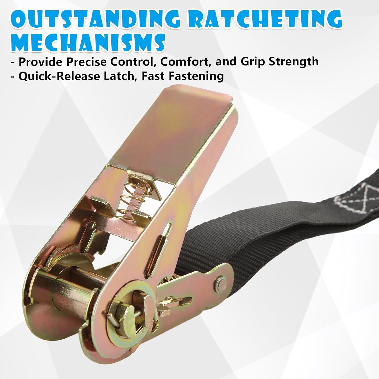 【Simple to Use】Ratchet with a straightforward launch mechanism to simply launch and tighten. Labor-saving spring design, simple to make use of, saving effort and time. Tie down straps excellent for porters, landscapers, boaters, campers, building, tree removing and traction.