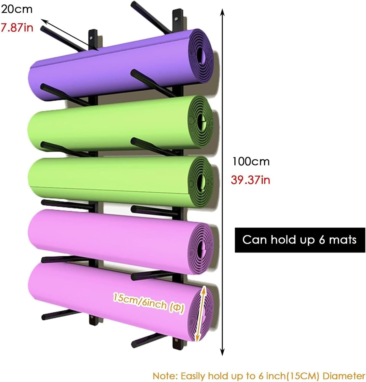 SIZE: Massive capability work out mat shelf maintain up 6 curler mats, 100 cm / 39.37 inches heighth, 20 cm / 7.87 inches width. (Word: Product not included mat).