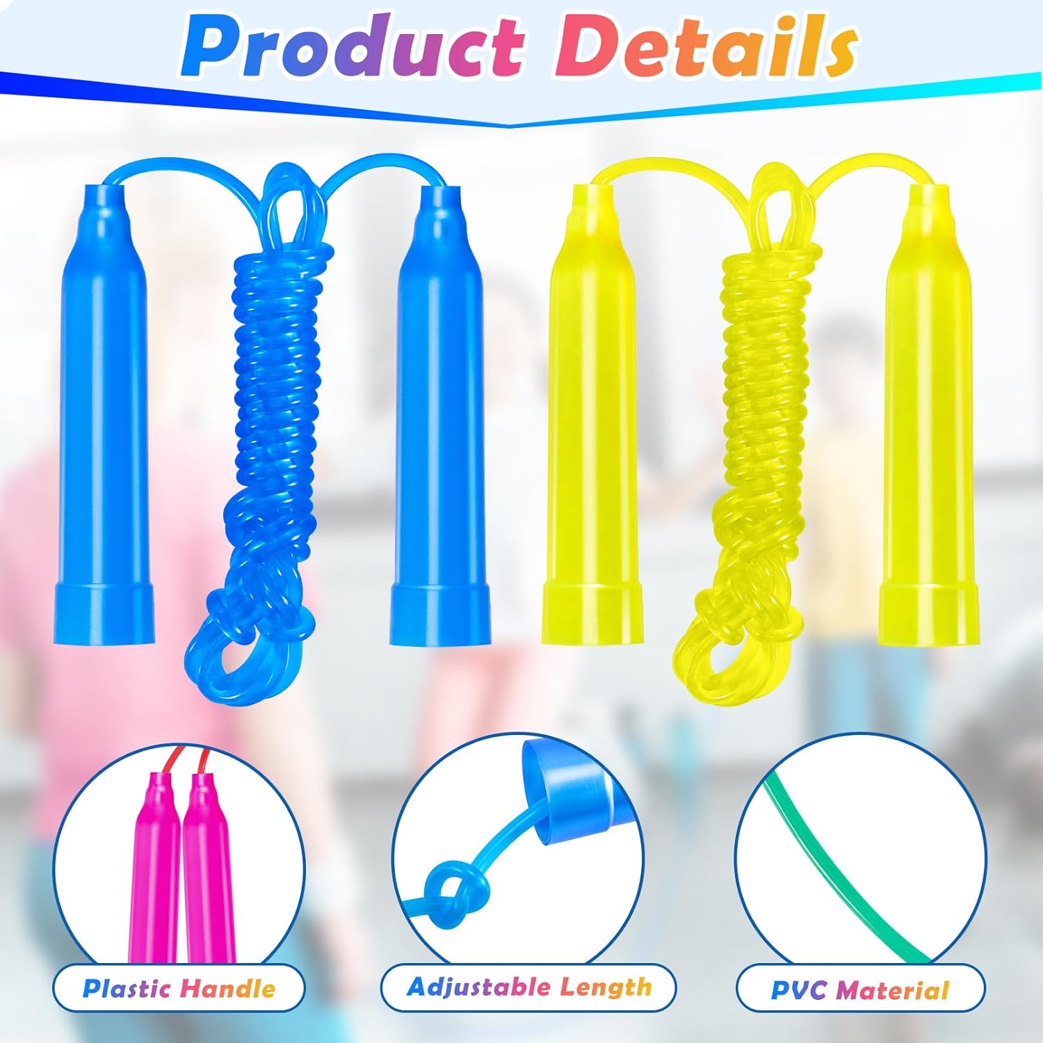 Excessive High quality: Every soar rope is comprised of comfortable PVC materials and measures 7.3 toes (roughly 2.1 meters) in size. The handles are crafted from high-quality plastic, designed to be sturdy and sturdy, with a form that matches comfortably in a toddler’s hand for a safe grip.