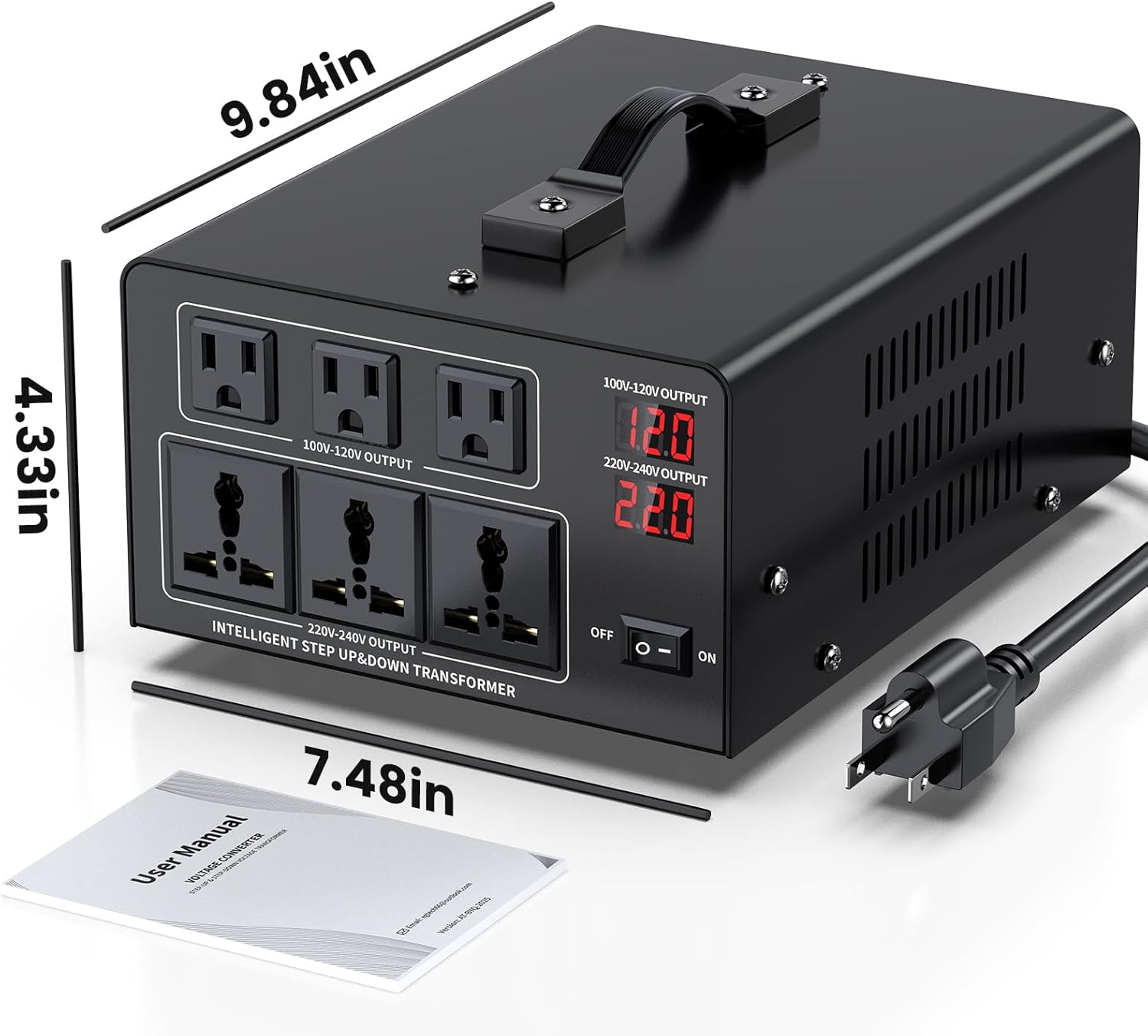 【Multi practical voltage converter】: This voltage converter is used to transform a voltage of 100-120 volts to 220-240 volts. Scale back the voltage from 220-240 volts to 100-120 volts. Present protected and dependable compatibility for electrical home equipment with totally different voltages in numerous nations.