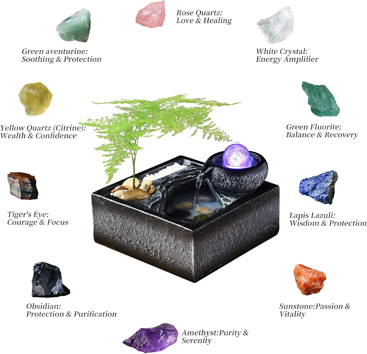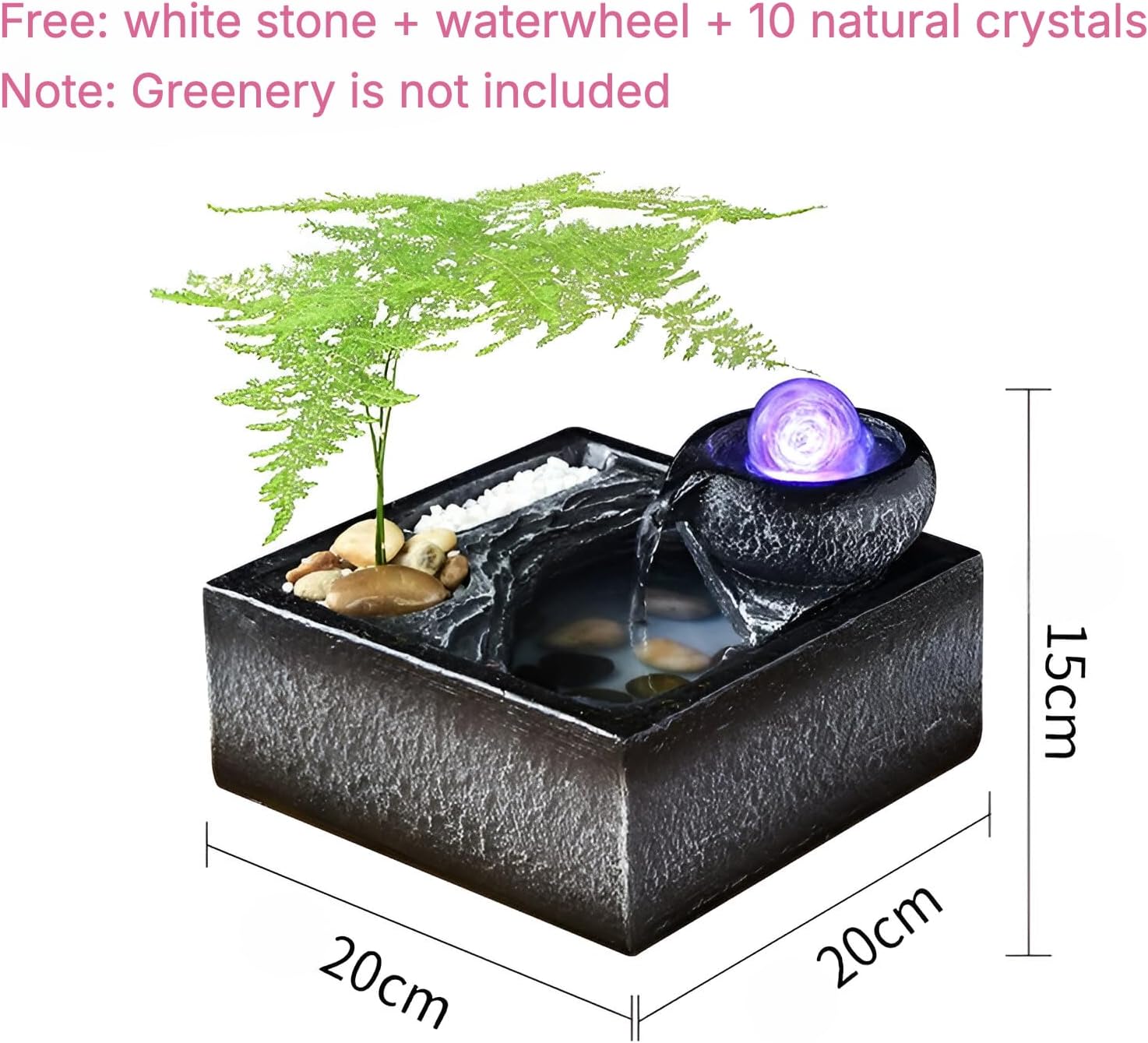 This 7.87-inch desktop fountain options a wonderful flowing water design, with a gradual circulation of water and a rotating crystal ball, symbolizing rolling wealth and limitless life, making a serene and comfy environment. The fountain has built-in LED lights, which replicate the flowing water and improve the model of the house, appropriate for workplace, front room, bed room and different inside ornament, whereas serving to to sleep and loosen up. The fountain adopts mute water pump, easy water movement with out noise, extra sturdy for very long time use. Free 10 pure crystals along with your order, add pure power to your house and convey good luck!