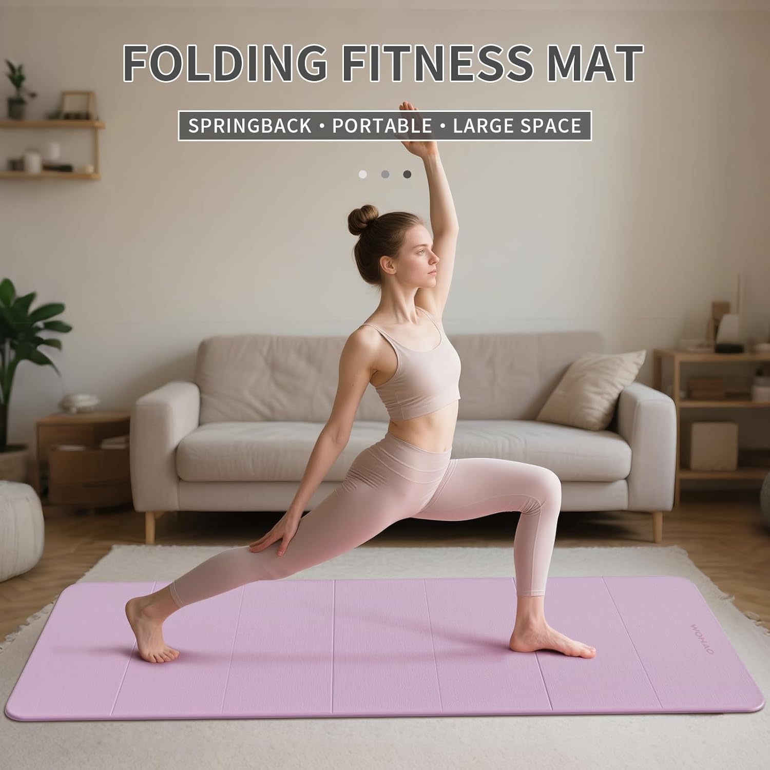 WOHAO 7-Fold Yoga Mat 74″x31″ – 0.31 Inch Thick Folding Train Mat, Further Extensive Non-Slip POE Mat for Journey, Storage, Yoga, Pilates, Meditation & House Gymnasium, Light-weight & Transportable