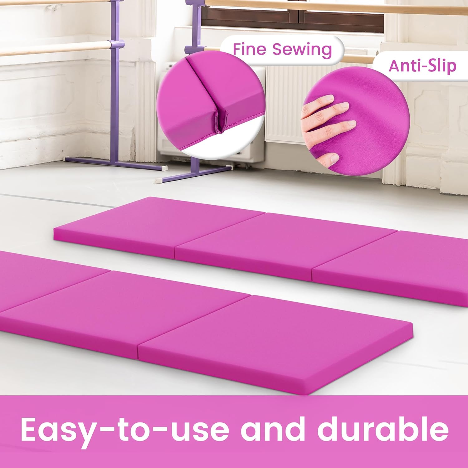 A 6×2×2 ft, 3-lb tri-fold gymnastics mat with anti-slip vinyl, Velcro-link expandability, and puncture-proof sturdiness that immediately creates a joint-cushioning coaching zone wherever—front room, yard, or studio—for tumbling, yoga, wrestling, and extra.