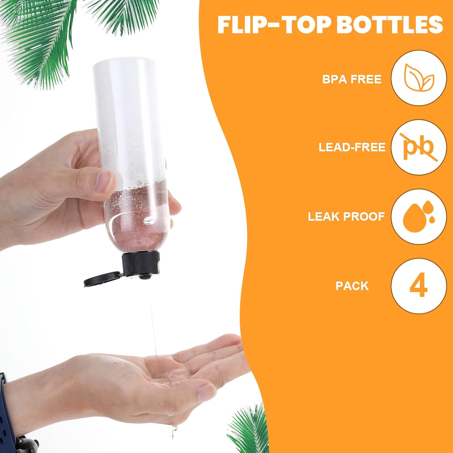 Qianyu 7oz Plastic Journey Bottles with Flip Cap Reusable Clear Leak-Proof Squeeze Containers Empty Cosmetics Dispenser Container for Toiletries, Shampoo & Lotion (4 Pack Clear)