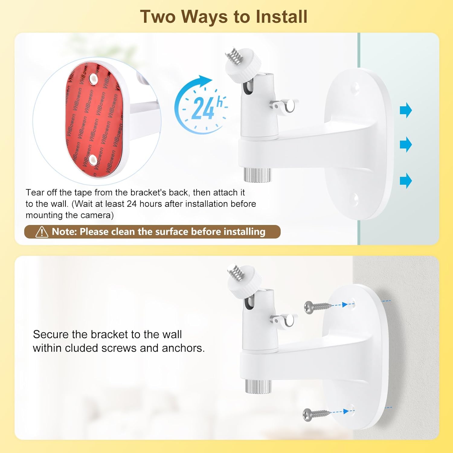 【2 Set up Strategies】This hellobaby monitor mount affords 2 handy mounting choices to fulfill totally different state of affairs necessities. You’ll be able to tear off the tape from the bracket’s again, then connect it to the wall. Or safe the bracket to the wall inside cluded screws and anchors.