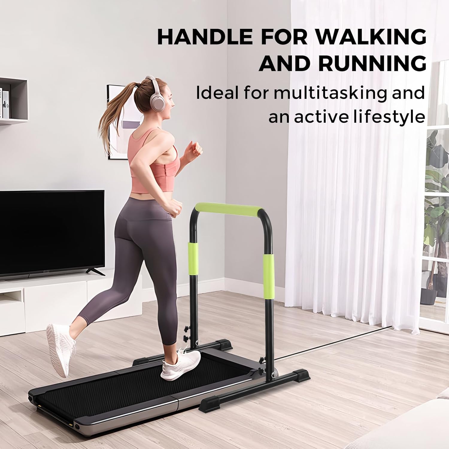 Adjustable Walking Pad Handle only,Compatible with 19.7” Wide Walking Pad, 31.4-43.4” Height Range & 440lbs Capacity,Stable Home Office & Gym Safety Handrail (Green)