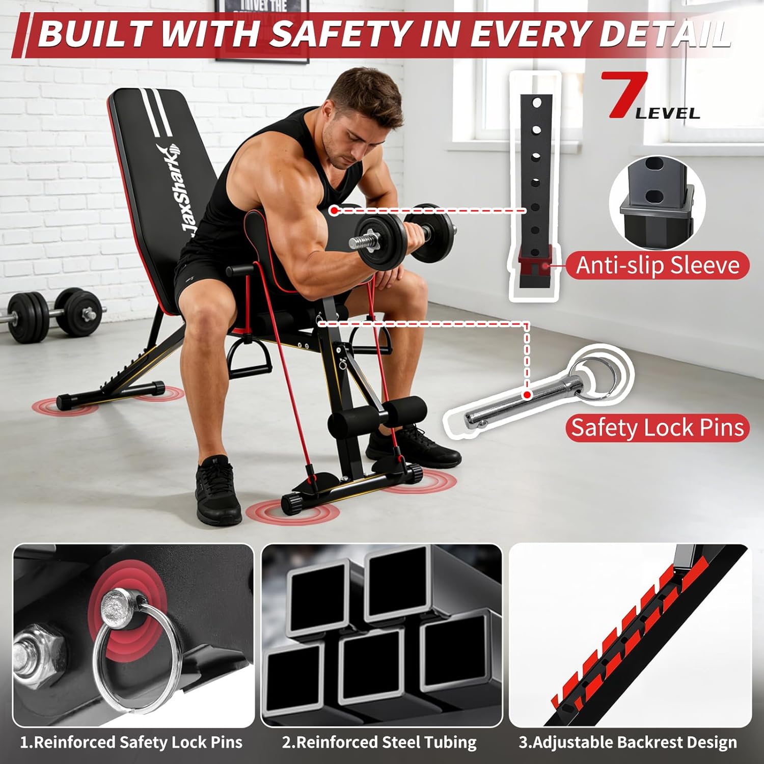 7-Angle Adjustable Full Physique Coaching: The JaxShark adjustable exercise bench includes a fast-adjustment pin, permitting you to seamlessly swap between 7 backrest angles (-14°, 0°, 13°, 25°, 36°, 48°, 61°) in seconds. Simply perform as an incline, flat, decline, or sit-up bench to focus on your chest, shoulders, core, again, and legs proper at dwelling.