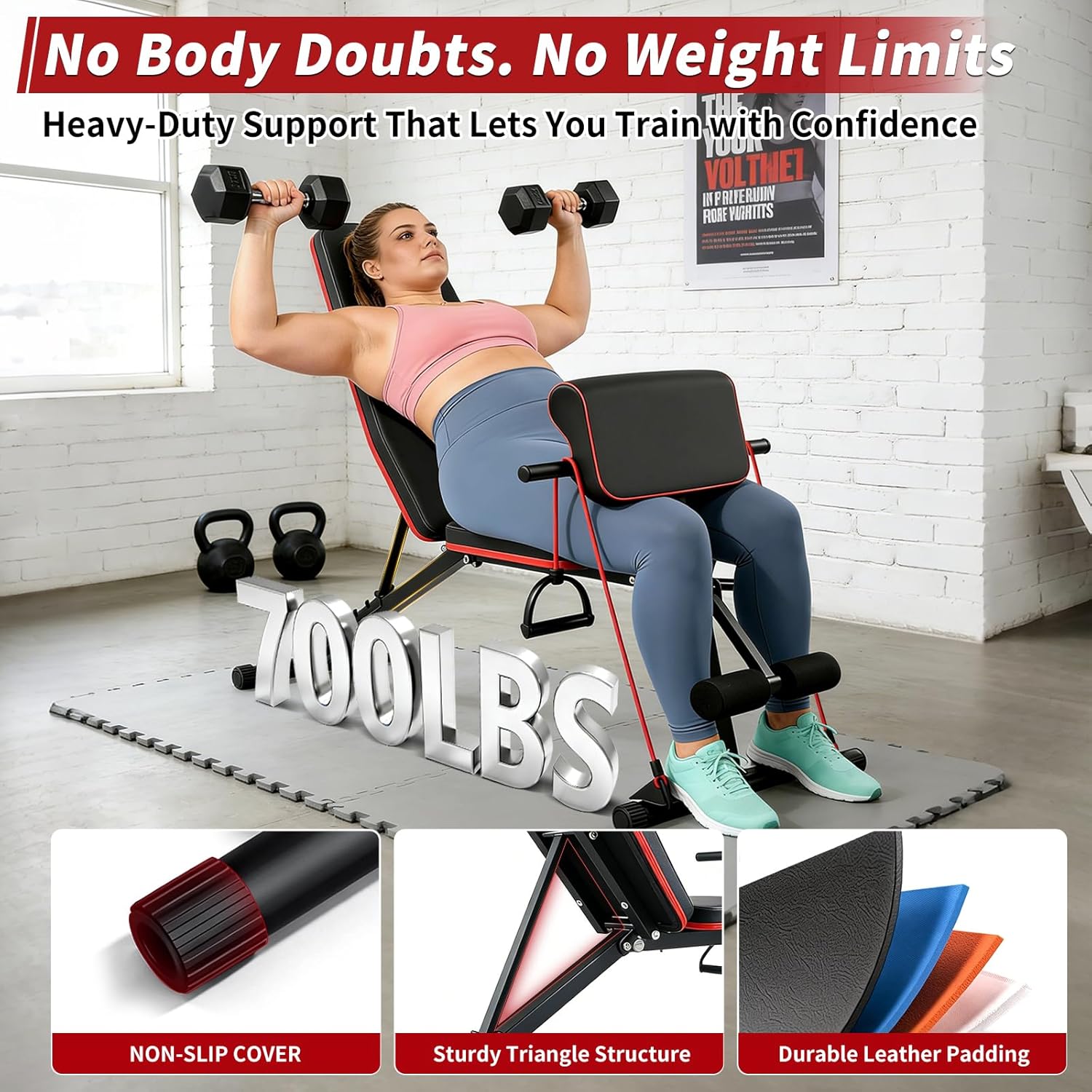 700LBS Heavy-Responsibility Gymnasium Bench Stability: Constructed with thickened metal tubing, strengthened security lock pins and a non-slip base, this health club bench helps as much as 700LBS, delivering rock-solid stability for bench press, Nordic curls and heavy energy coaching tools exercises.