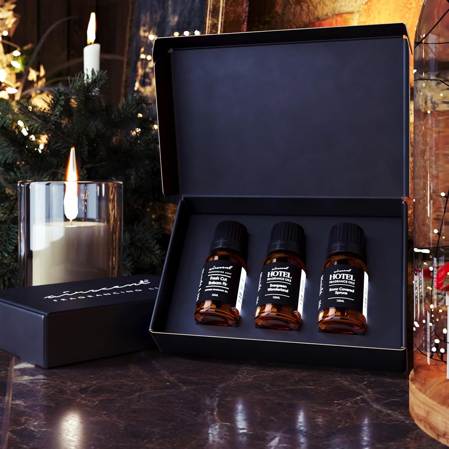 Selection Pack Field Set – Vacation Diffuser Oil Reward Set together with Evergreen Wonderland, Recent Minimize Balsam Fir and Snow Coated Spruce scents