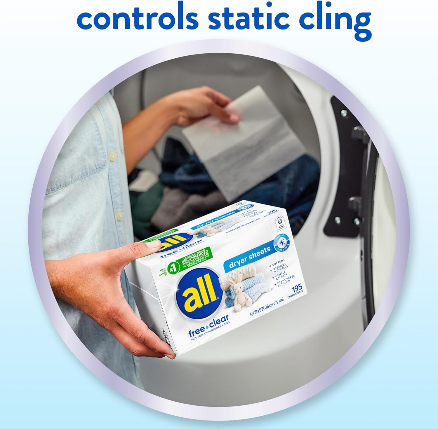 Pair with all free clear detergent and cloth softener for an entire sensitive-skin-friendly laundry routine. Consists of one field of 195 dryer sheets