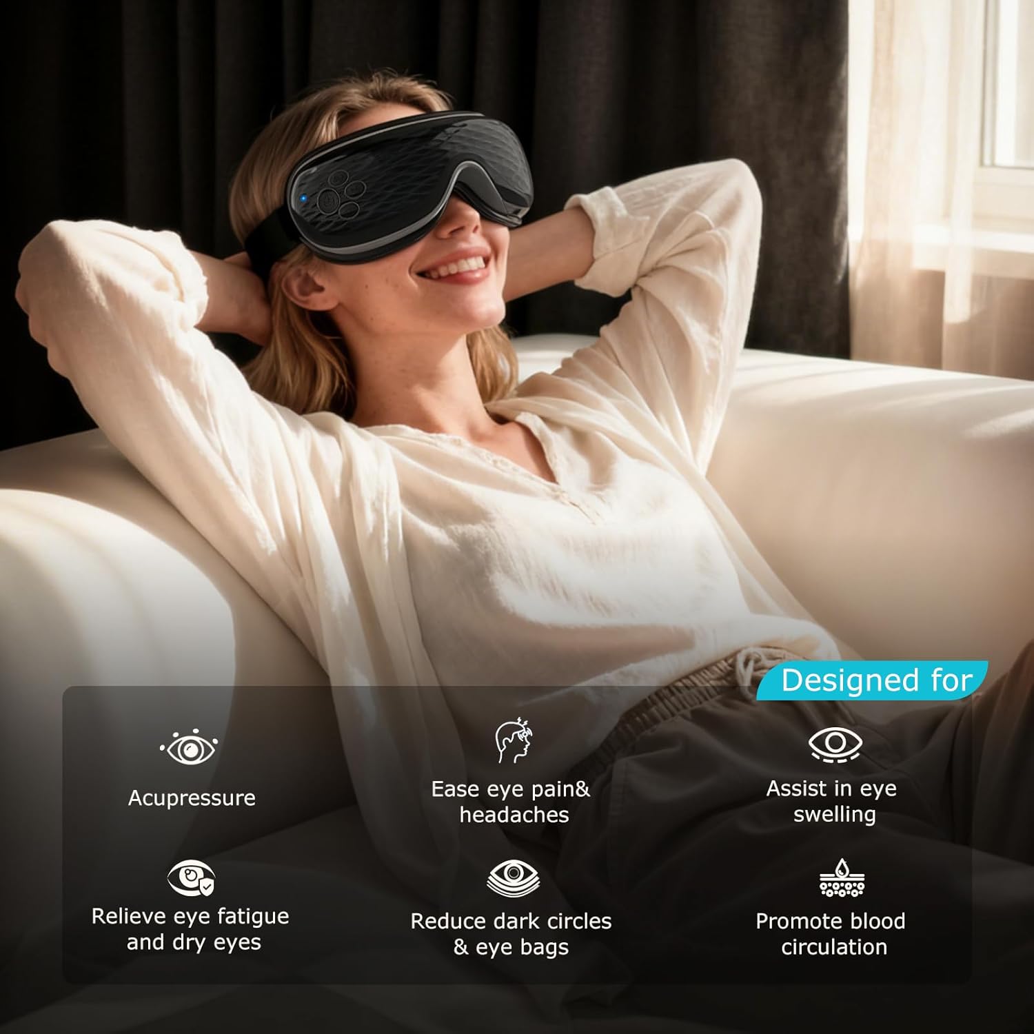 Soothing Warmth for Eye Fatigue: This heated eye massager gives 2 adjustable temperature settings (104℉-113℉). It not solely improves blood circulation across the eyes to alleviate fatigue but in addition helps diminish high-quality traces and boosts eye cream absorption. Simply quarter-hour day by day equals knowledgeable eye therapy