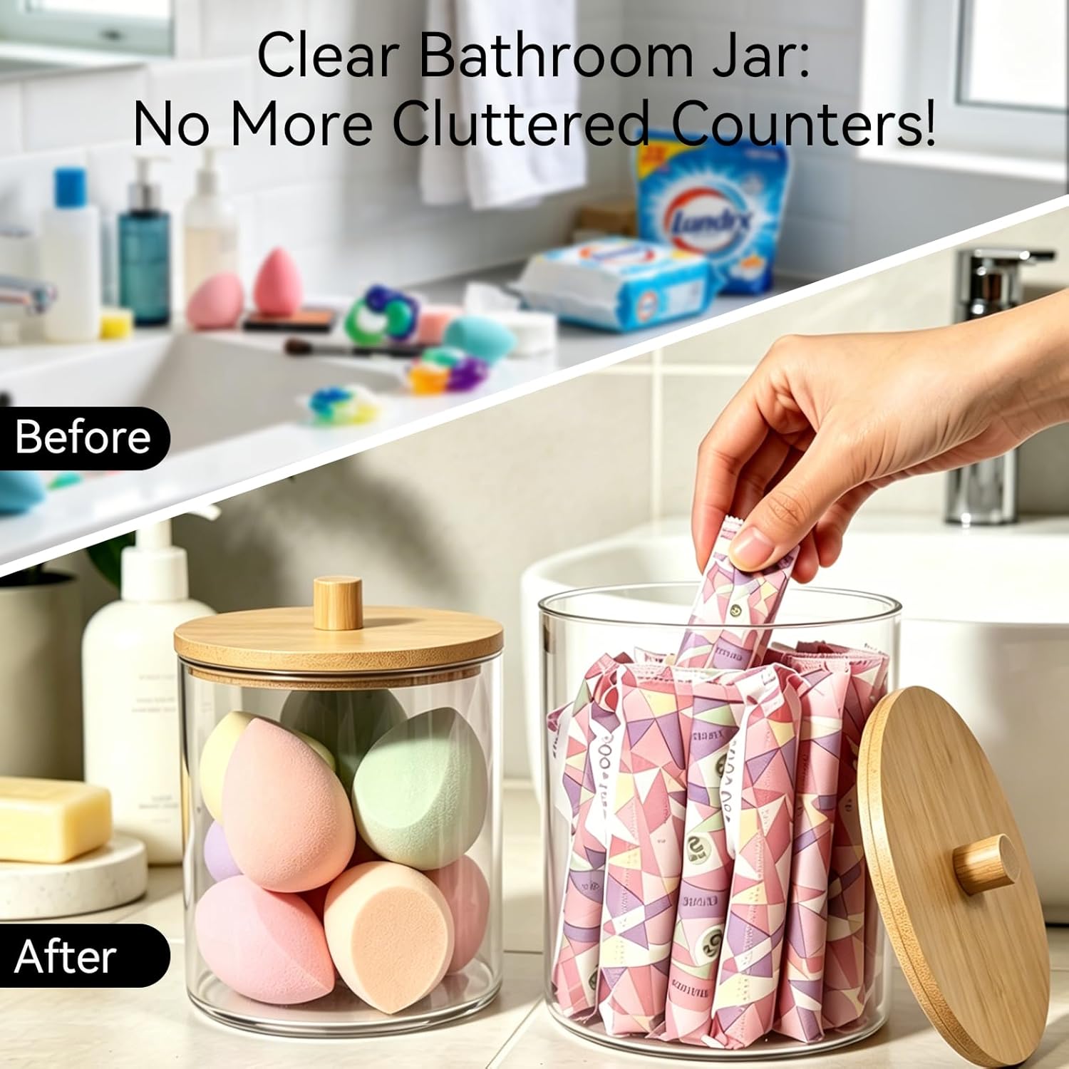 ✅ SUSTAINABLE & USER-FRIENDLY DESIGN – Crafted from sturdy, BPA-free acrylic (𝗻𝗼𝘁 𝗴𝗹𝗮𝘀𝘀), performs a greater resistance to cracking or breaking than glass does if dropped. This elegant apothecary jar combines eco-conscious supplies with a timeless design. The pure bamboo lid provides a contact of contemporary farmhouse allure to your laundry room,rest room or kitchen decor. It is a Eco-Pleasant and classy decor resolution for any dwelling.(𝐓𝐡𝐞 𝐥𝐢𝐝𝐬 𝐜𝐚𝐧’𝐭 𝐬𝐜𝐫𝐞𝐰 𝐨𝐧)
