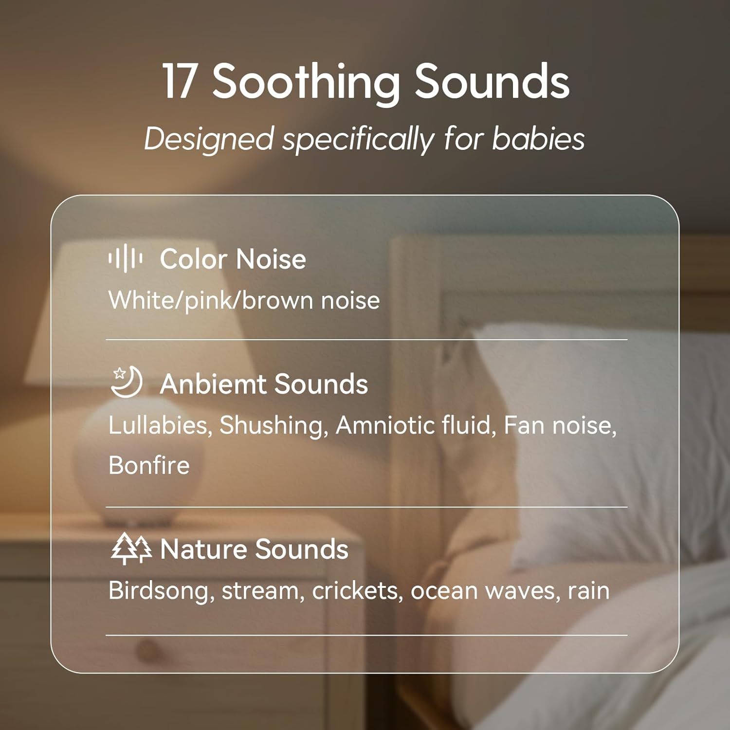 17 Sound Choices: It consists of numerous white, pink, and brown noise, lullabies, shushing, fan noises, and nature sounds. Discover the proper sound to appease your child or to loosen up your self