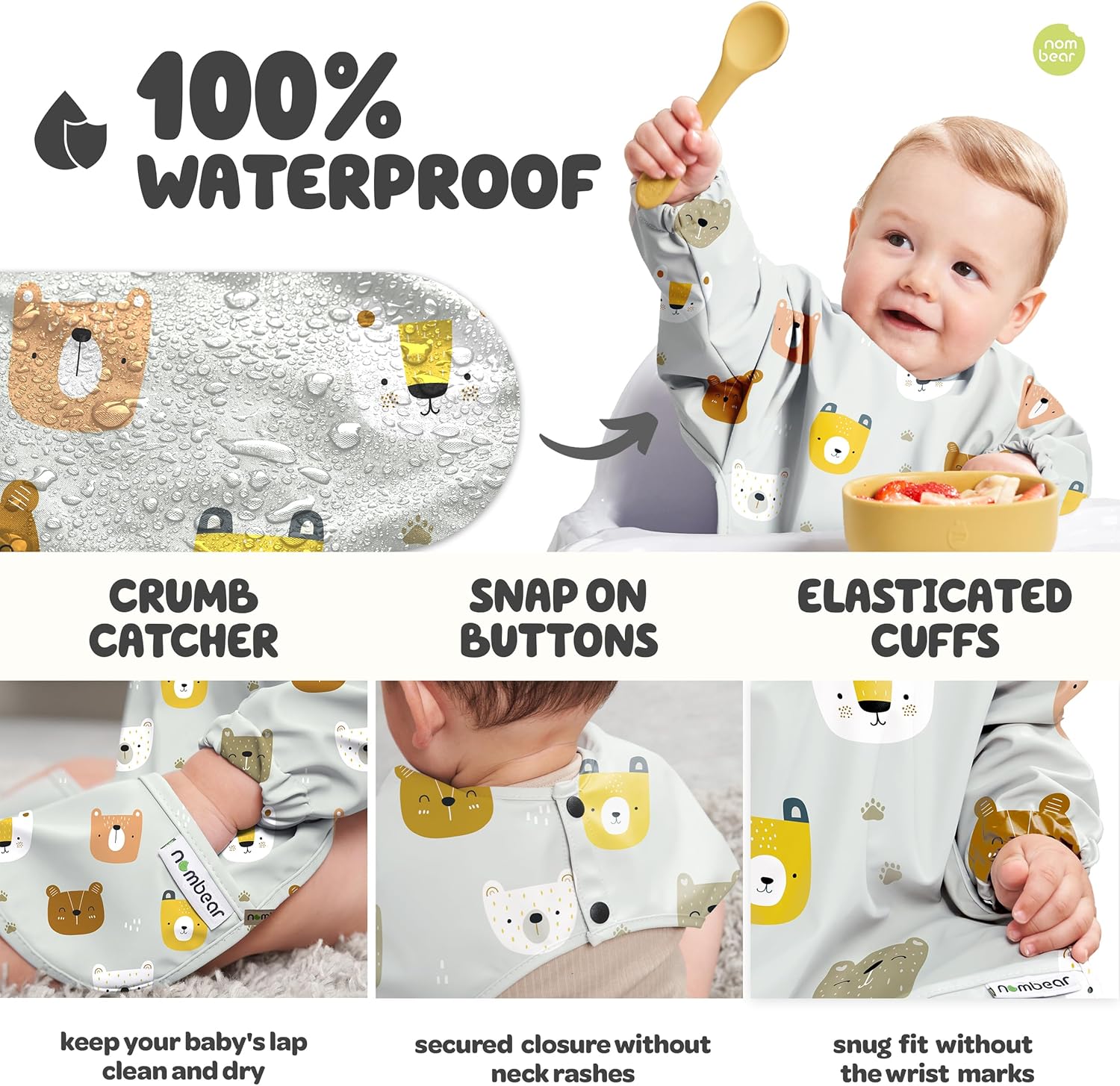 Is your toddler prepared for solids? Then it’s Yummy Time! Assist your child benefit from the discovery of meals whereas getting messy to their coronary heart’s content material with our stunning lengthy sleeve child bibs for consuming. Lightning fast button fastening for when dinner’s prepared. No fidgeting with tie-ups or hook and loop fasteners. And with elasticated cuffs, our smock bibs for infants is light on these chubby wrists. Skip the tears about soggy moist tops and awkward clothes modifications midway by means of the meal. It gained’t be the tip of the world in the event that they find yourself sporting their meals, which let’s be sincere can occur in these early levels. These 100% polyester waterproof child bibs are simple to wipe clear, or wash in a rush to get out the smushed blueberries and avocados. Prepared for motion whenever you want it, let your child or toddler discover and uncover with out worrying about cleansing up the meals apocalypse afterwards. Appropriate for early weaners and as your child grows, our toddler bibs with sleeves are usually not solely nice for snack and mealtimes, however different messy enjoyable like portray and moist play. There are not any garish colours right here, only a stunning child feeding bib in a tender contact material which is each waterproof and breathable. Supreme for child led weaning (BLW), and greater than cute. At Nombear we need to assist your toddler uncover a love of meals. It is our firm mission. That and full tummies in every single place.