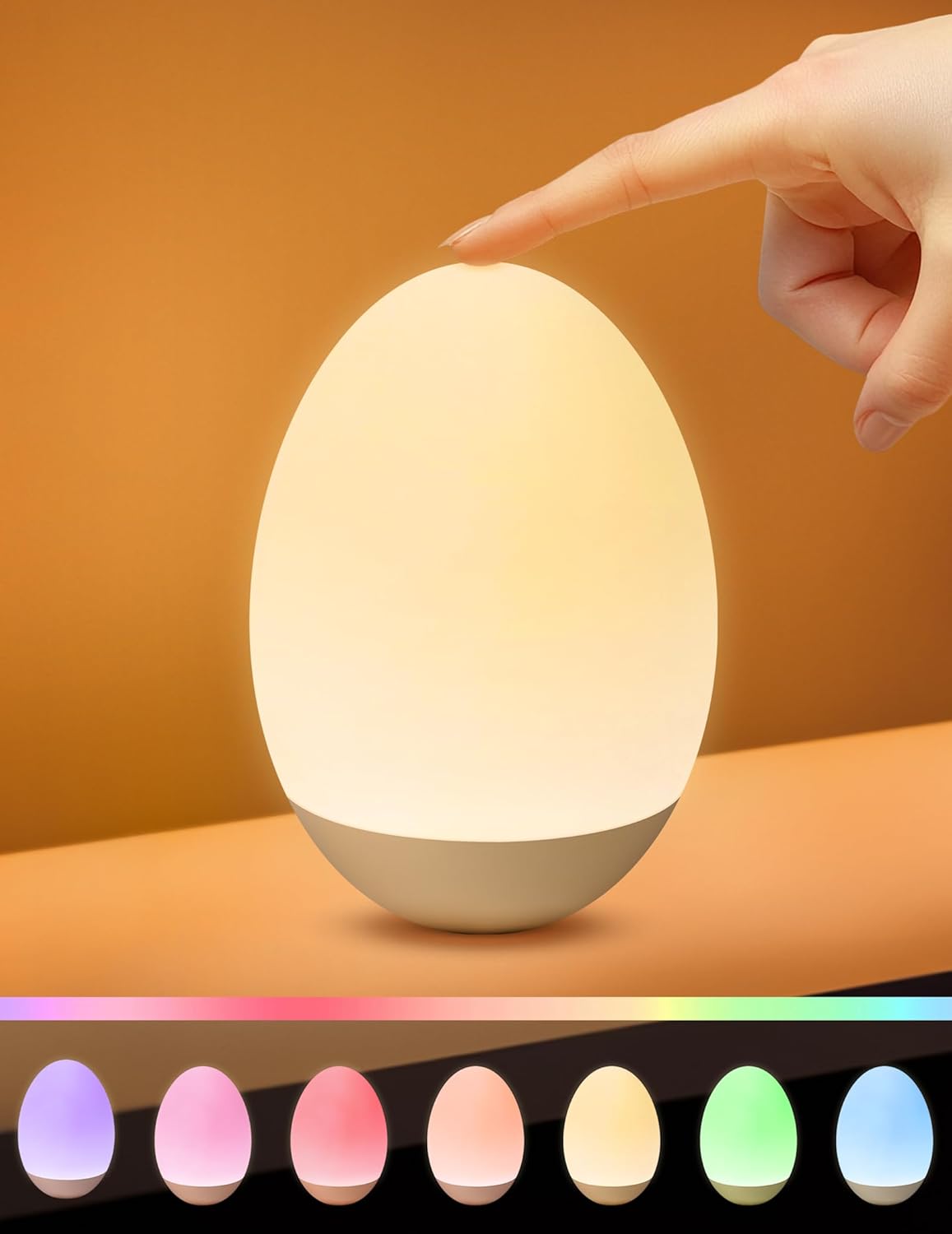 Baby Night Light for Nursery: Egg Touch LED Night Lights Stepless Dimming with Warm White and 7 RGB Colors Rechargeable Portable for Infant and Kids Bedroom Breastfeeding Sleep Aid Tap Lamp