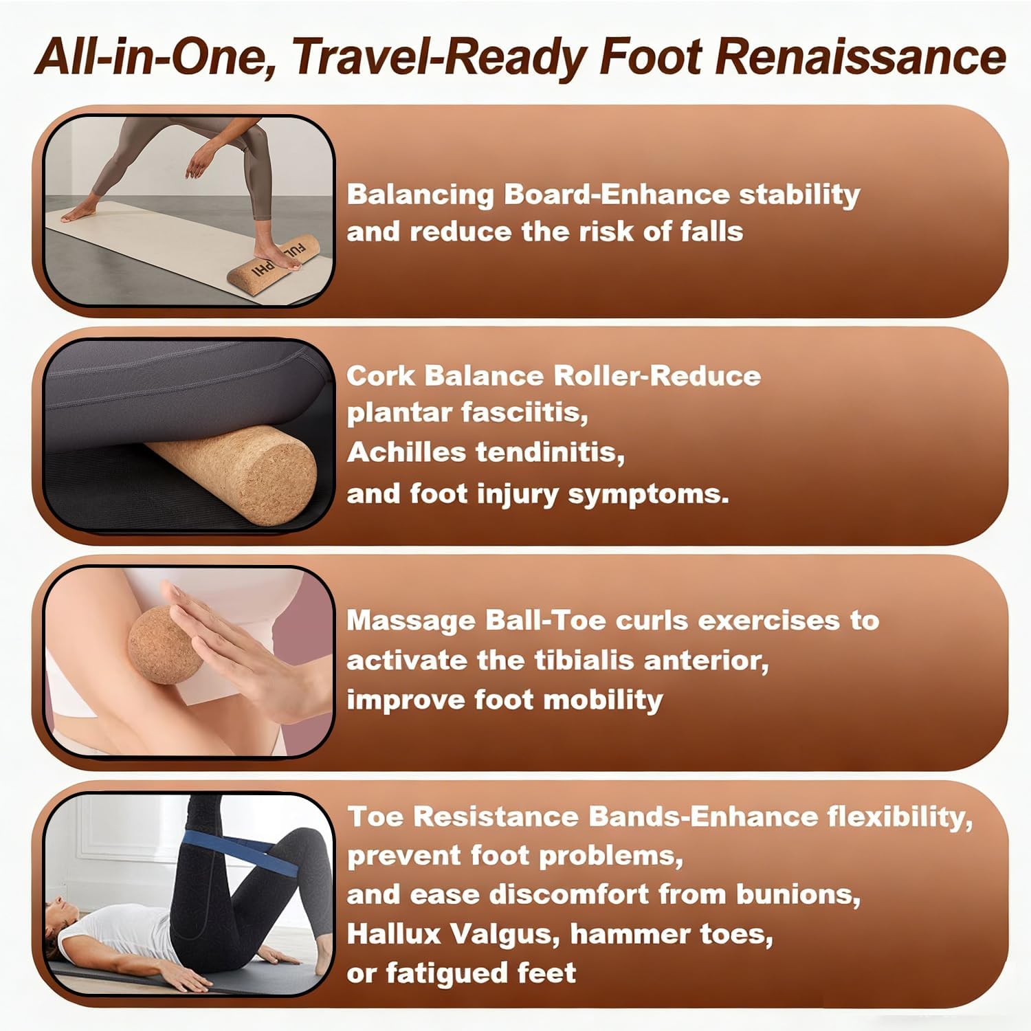 Steadiness Coach Equipment: our foot stability cork equipment is your multi function resolution for foot remedy; It consists of 2 sizes half cylinder cork stability boards, 1 foot therapeutic massage ball, 2 resistance bands; Obtain holistic restoration and foot arch power with our expertly crafted instruments in a single handy bundle