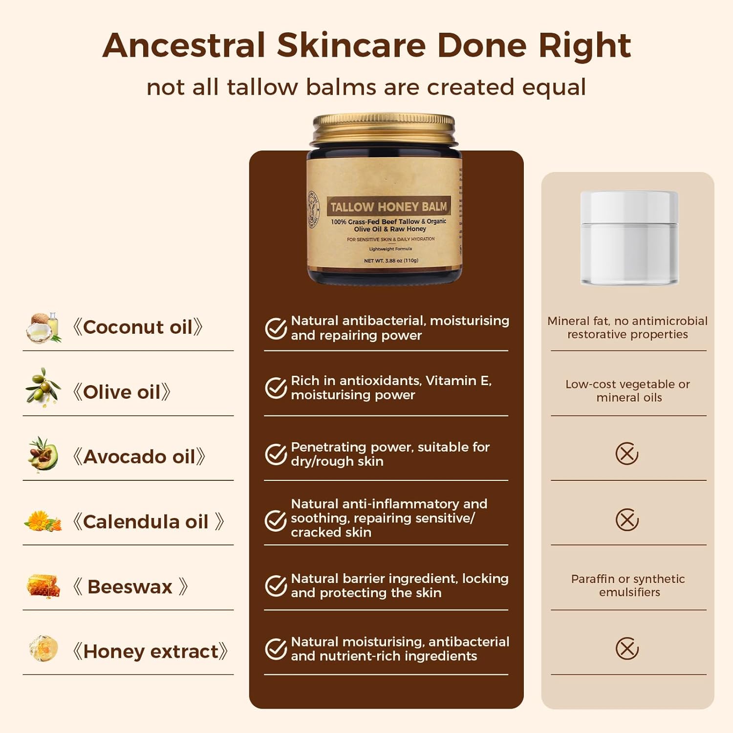 Pure and Concentrated Tallow Balm : Our tallow balm contains a pure formulation free from synthetic fragrances and preservatives, guaranteeing it is light sufficient for delicate pores and skin whereas offering a concentrated method that melts on contact for efficient moisturizing.